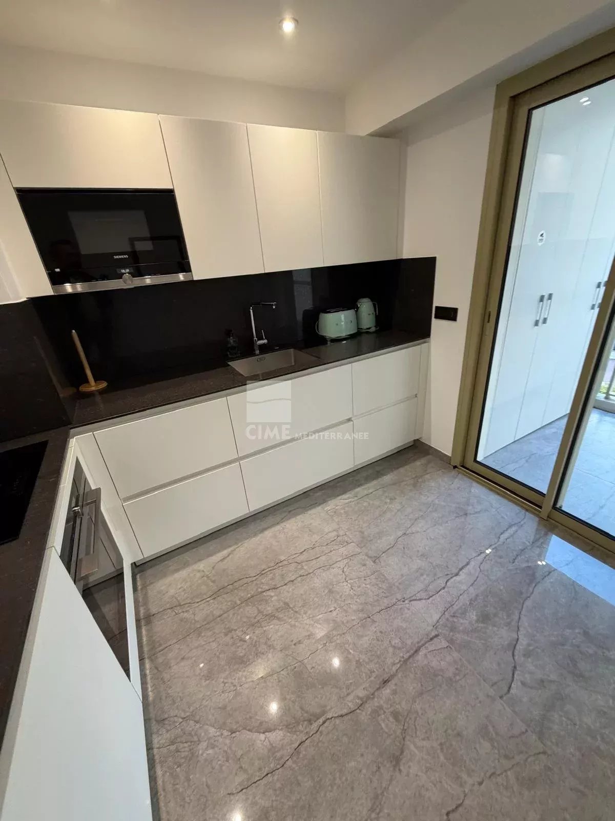 La terrasse plein sud d’environ 10 m² permet de profiter pleinement de la vue mer panoramique.