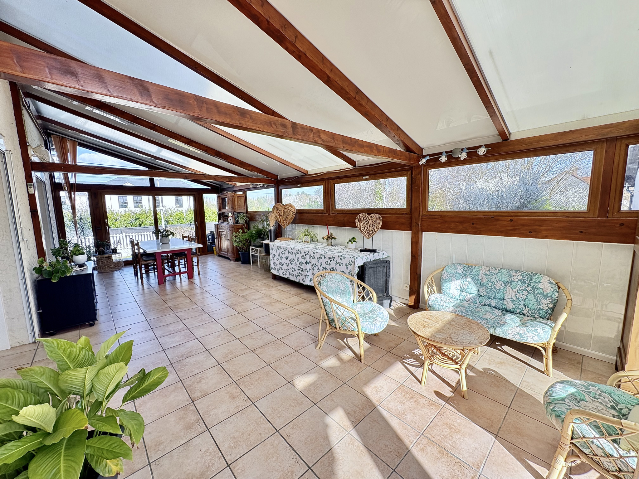 Le mode de chauffage mixte, combinant un poêle à bois et une pompe à chaleur AIR/AIR réversible, assure un excellent confort thermique tout en maîtrisant la consommation énergétique. Les fenêtres en double vitrage garantissent calme et isolation optimale.