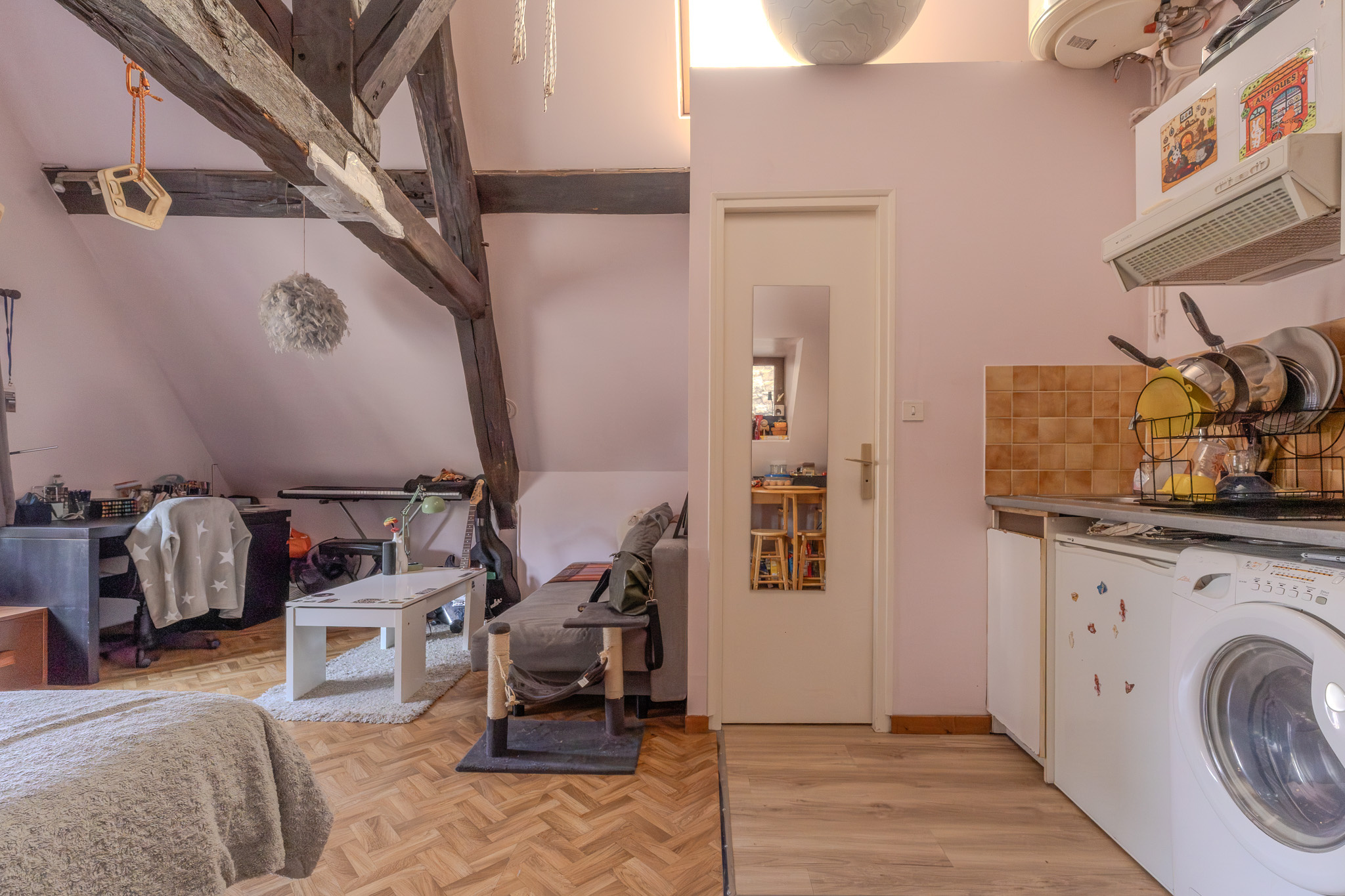 Situé au 2e et dernier étage d'une superbe bâtisse ancienne à colombages, ce studio plein de charme saura séduire les amateurs d'authenticité.