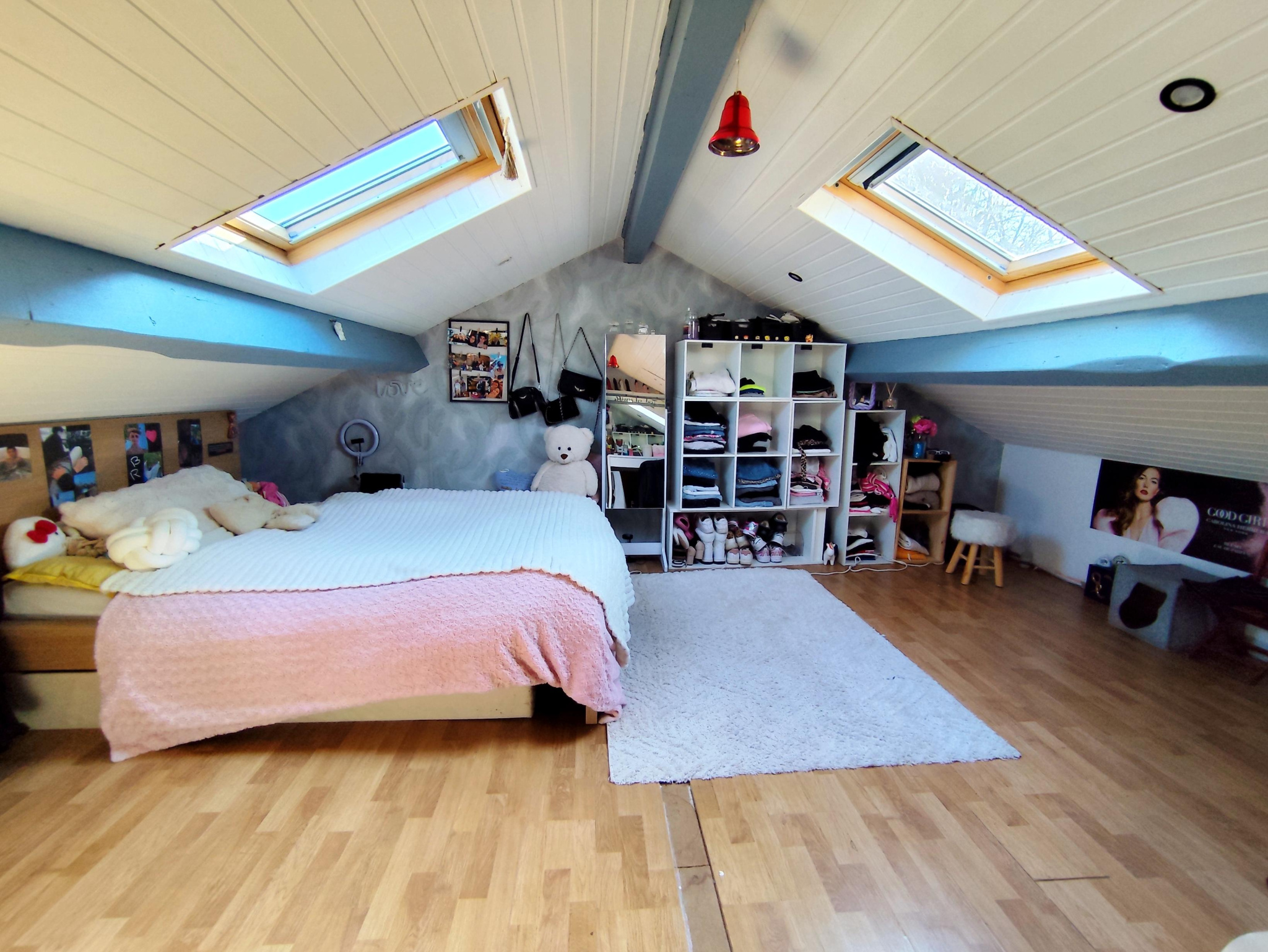 A l'étage, sous les toits, se trouvent deux chambres, apportant un espace nuit chaleureux et cosy.