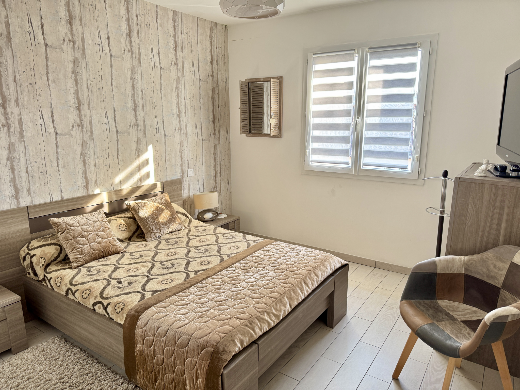 À l'extérieur, vous profiterez d'un terrain plat, clos et facile d'entretien de 600 m2, avec cour goudronnée, garage attenant et abri de jardin.