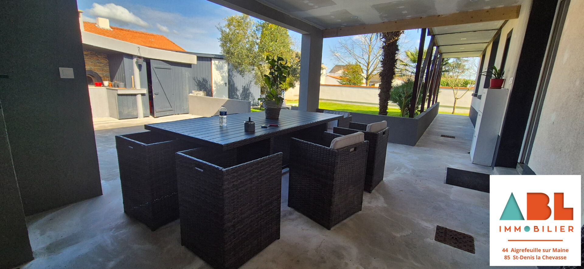La terrasse avec pergola invite à la détente? et le four extérieur devient vite le coeur des moments conviviaux entre amis ou en famille.