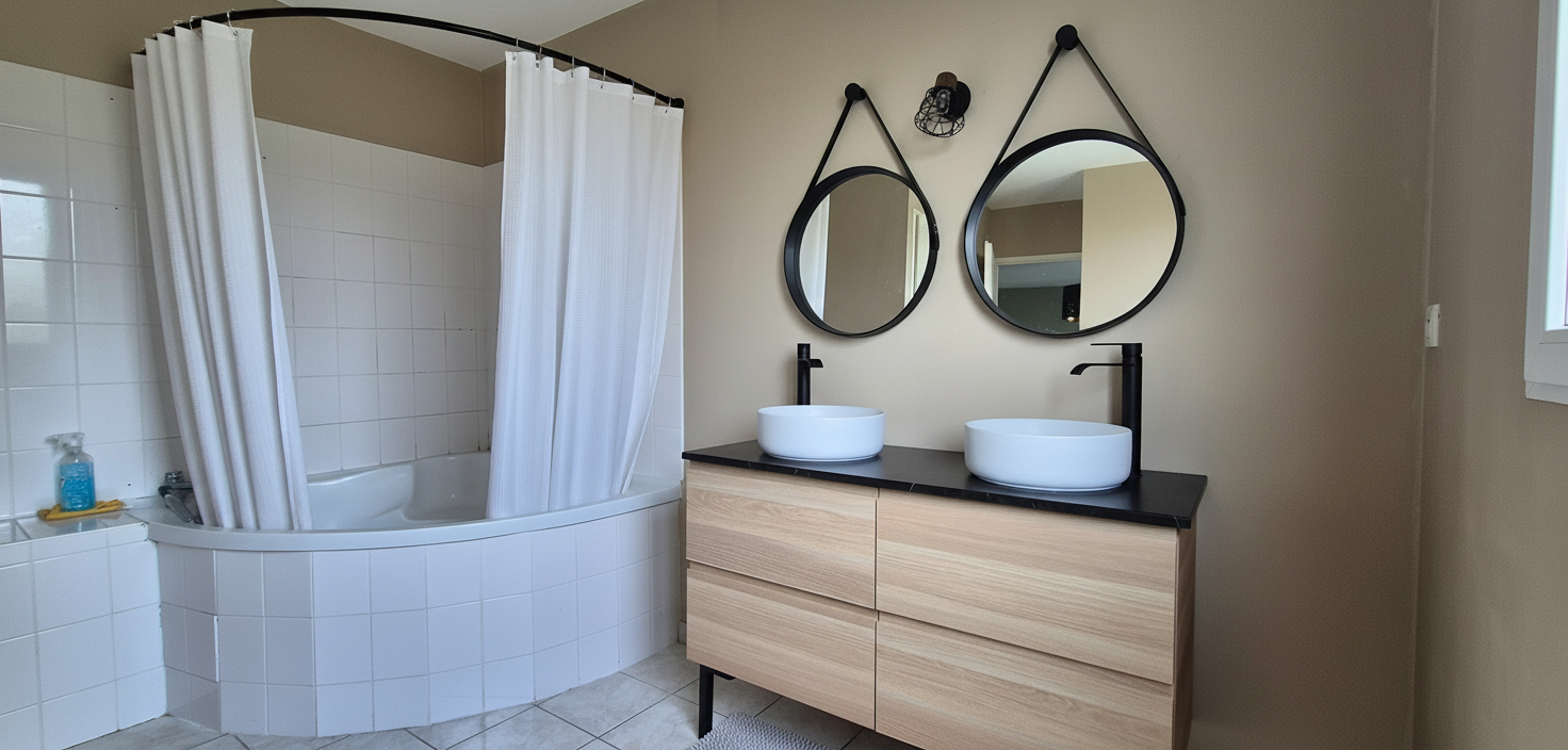 À l'étage, l'espace nuit accueille quatre chambres, dont une suite parentale d'environ 24 m² avec sa salle de bains privative comprenant baignoire, meuble double vasque et WC. Trois autres chambres ainsi qu'une seconde salle de bains complètent cet étage.