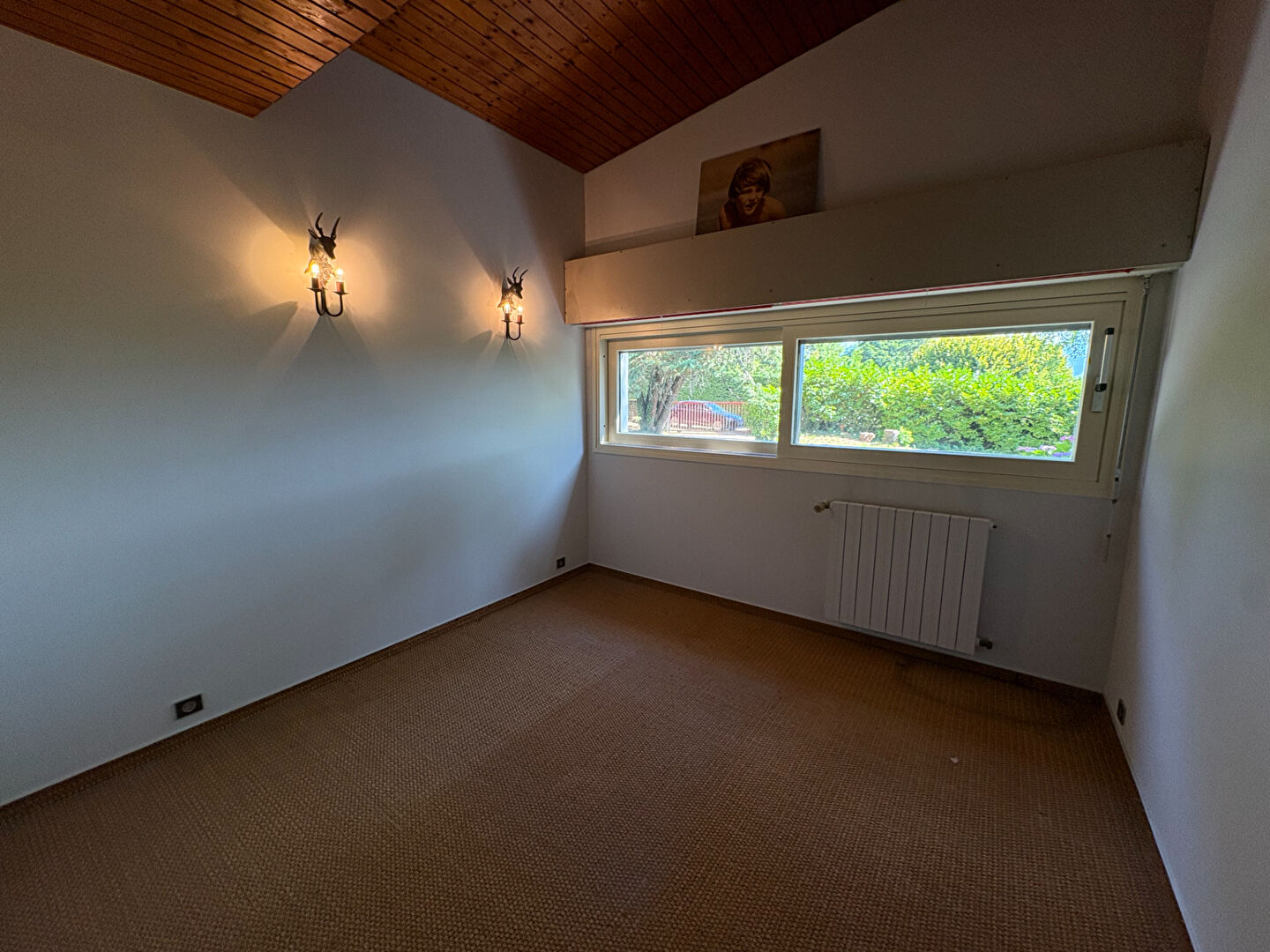 Vimines, sur un côteau bien exposé, au calme au sein d'un quartier résidentiel, belle maison d'architecte de 1981 de 195m² habitables. Cette villa offre de beaux volumes ainsi qu'un terrain de 1636m². Magnifique pièce de vie de 50m² avec un accès direct sur une belle terrasse exposée Sud-Est, cuisine indépendante, 3 chambres de plain pied, salle de bains et salle d'eau. A l'étage, une chambre et un bureau. Sous-sol complet avec garages.