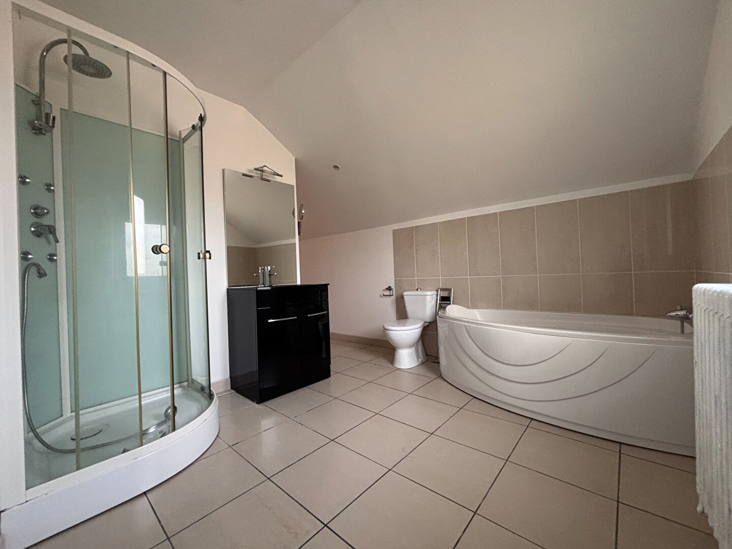 Au rez-de-chaussée, vous découvrirez une chambre, une salle d'eau, un WC séparé ainsi qu'une cuisine équipée semi-ouverte sur un séjour / salle à manger convivial.