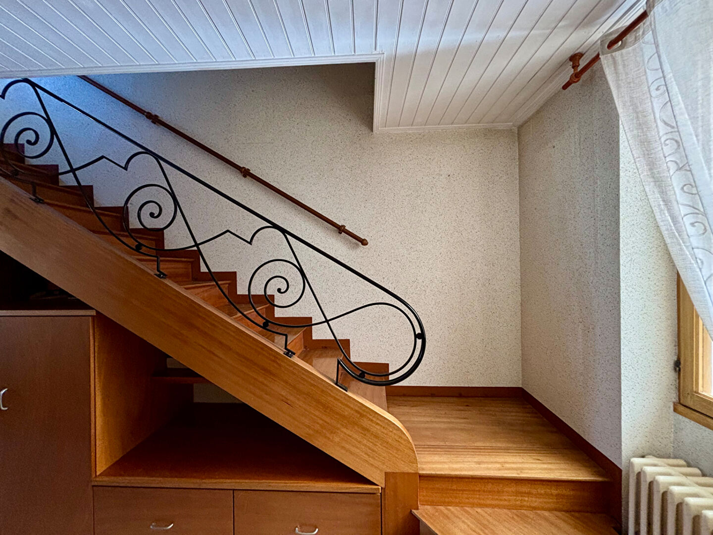À l'étage, l'espace nuit se compose de trois chambres ainsi que d'une salle de bains avec WC.