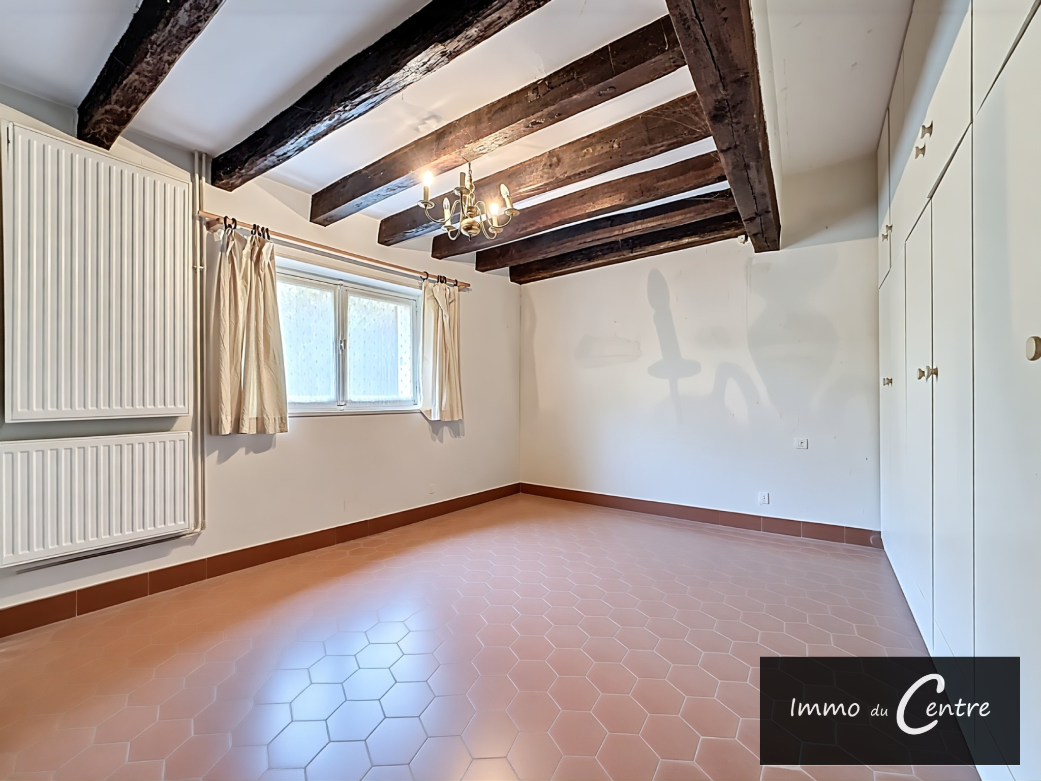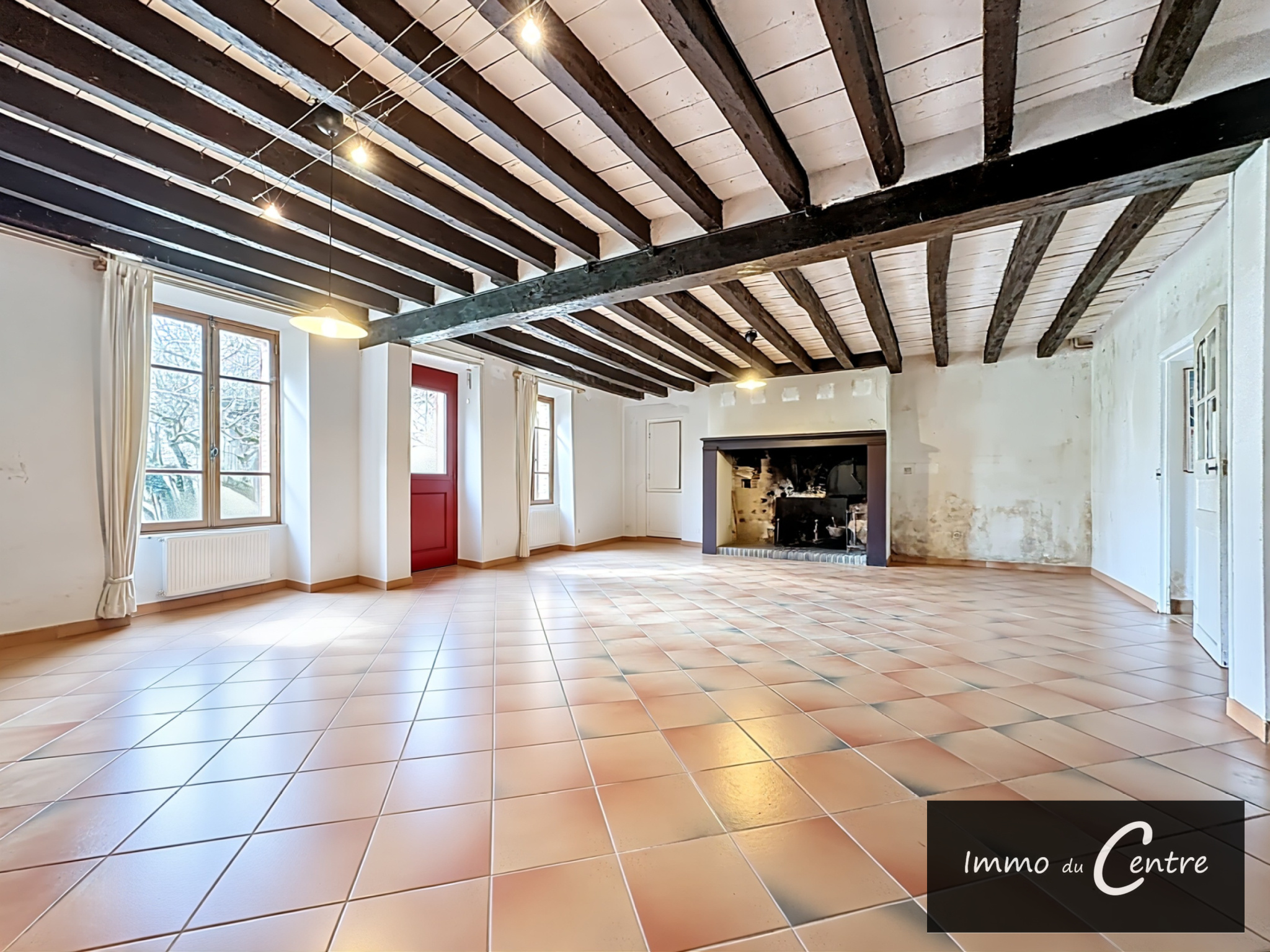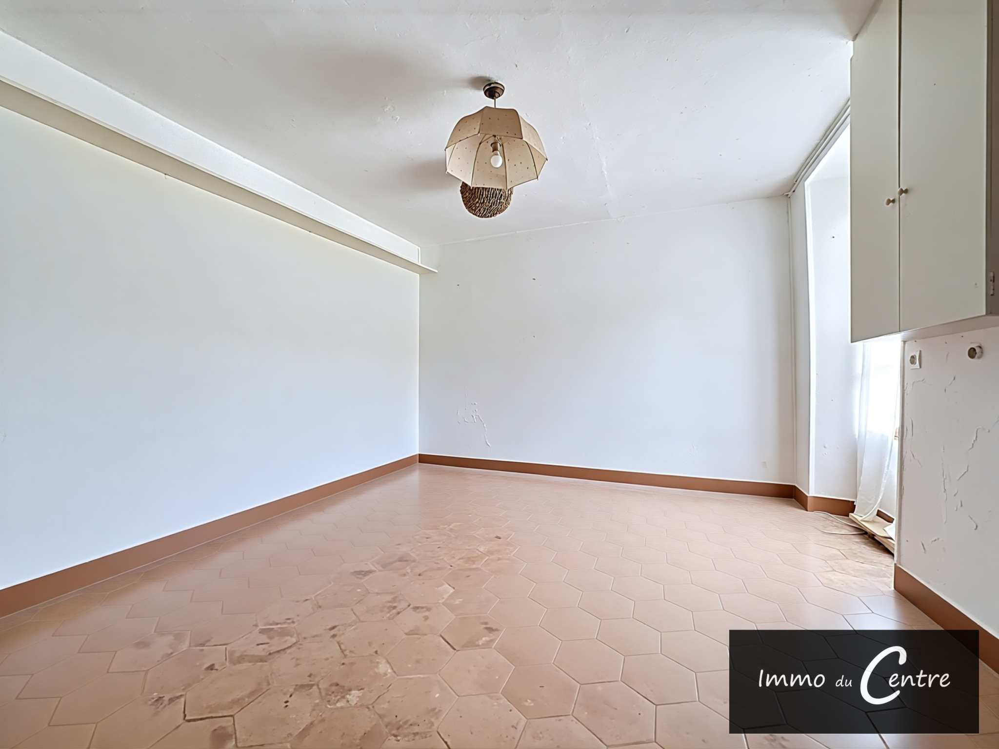 Prestations : chauffage central gaz citerne, simple vitrage sauf porte d'entrée récente, assainissement individuel, exposition EST/OUEST, (PHOTOS MODIFIEES - MAISON VIDEE DE MEUBLES PAR IA)