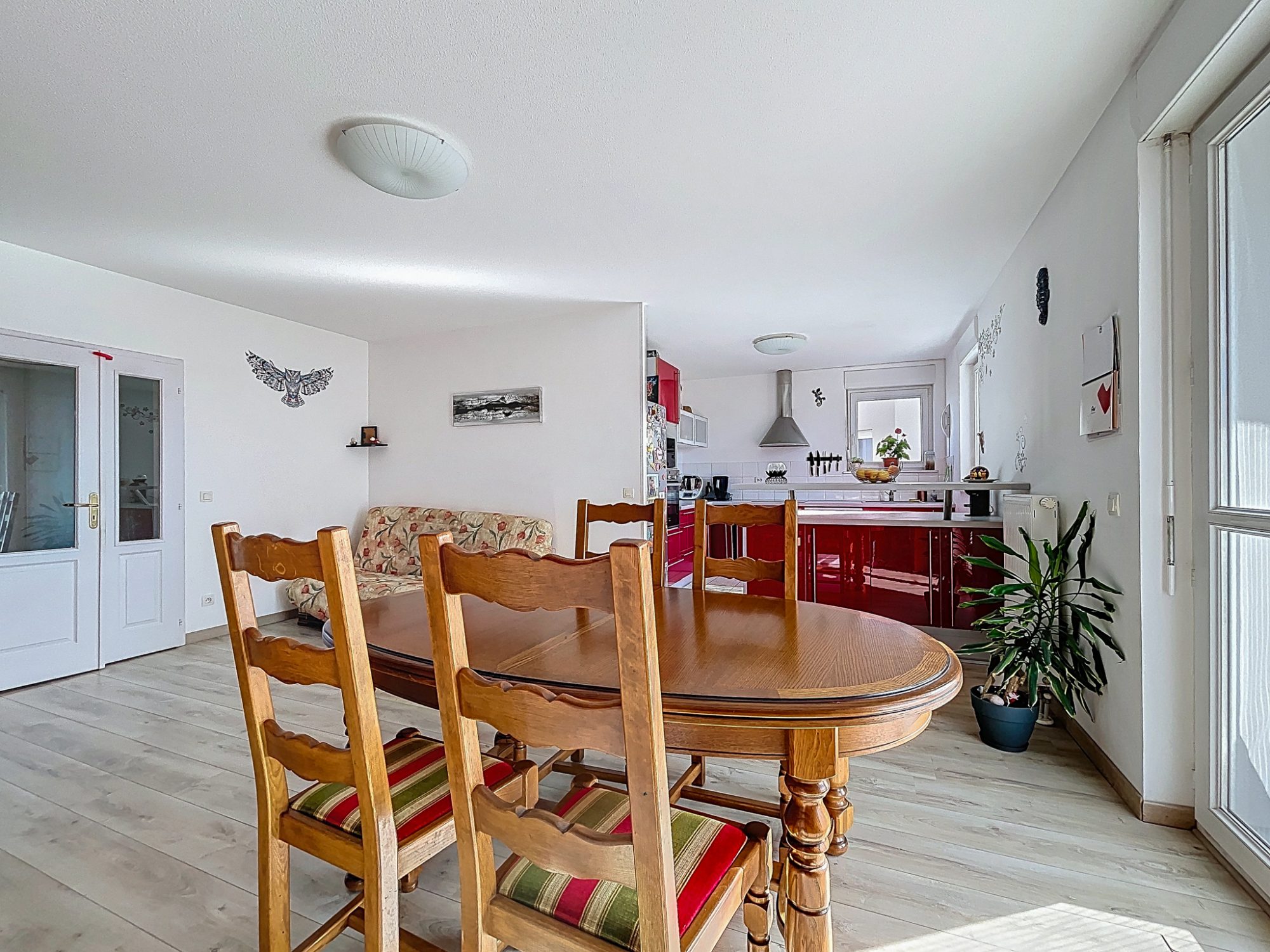 La pièce de vie ouverte avec accès balcon