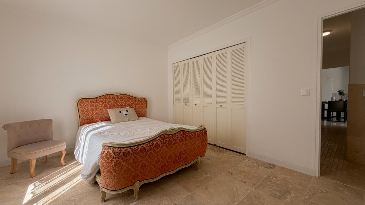 Dès l'entrée, la lumière vous accueille. Le séjour traversant, baigné de soleil du matin au soir, s'ouvre sur un espace cuisine conviviale. Les volumes respirent, les perspectives invitent à la détente et chaque espace semble naturellement trouver sa place. Le travertin, présent en fil conducteur dans toute la maison, apporte une chaleur minérale et intemporelle, comme un écho aux pierres nobles des demeures environnantes.