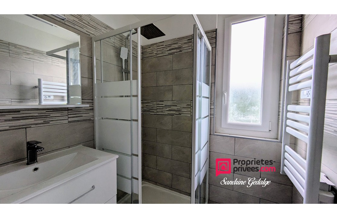 La partie nuit comprend trois chambres ainsi qu'une salle d'eau élégante, équipée d'une porte à galandage, d'une douche moderne et d'un sèche-serviette soufflant, tandis qu'un WC indépendant vient compléter cet espace.