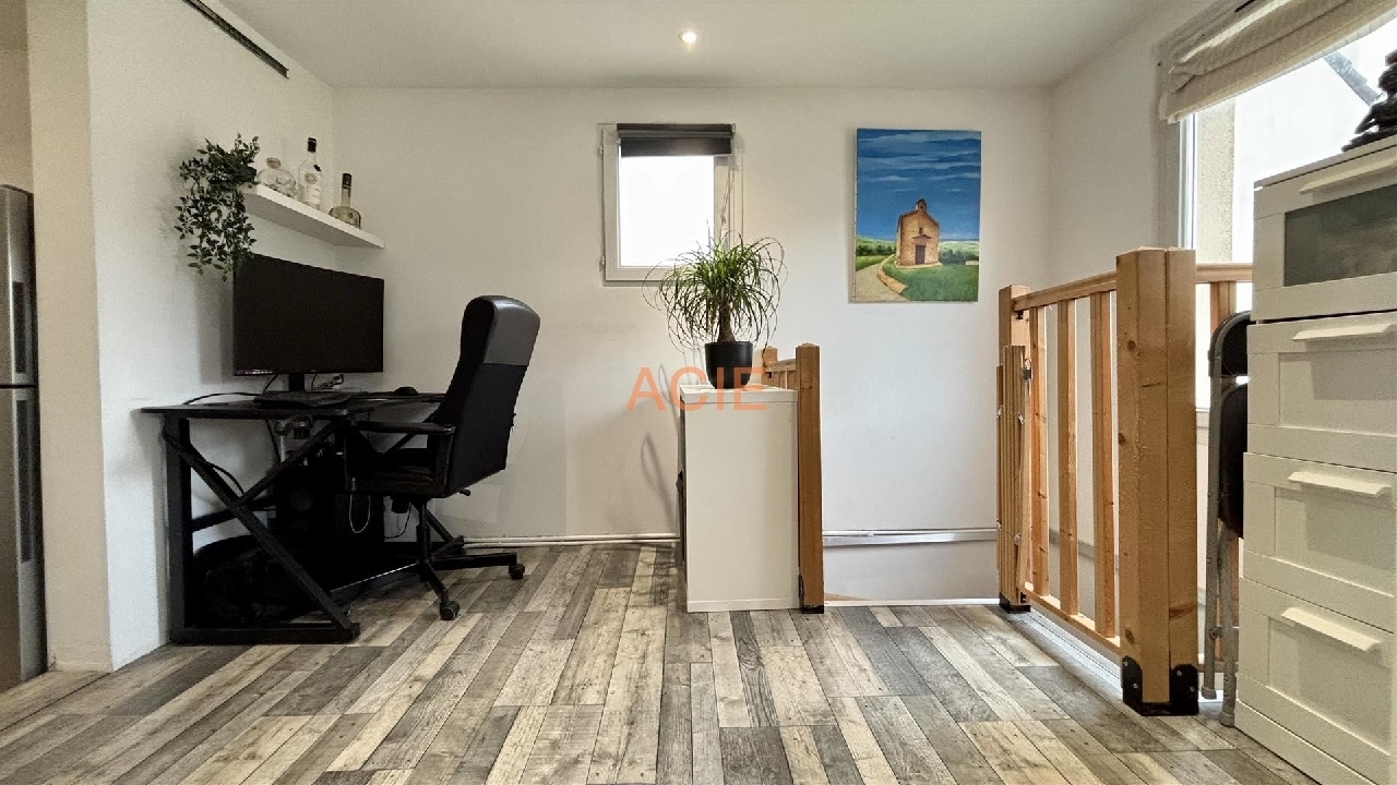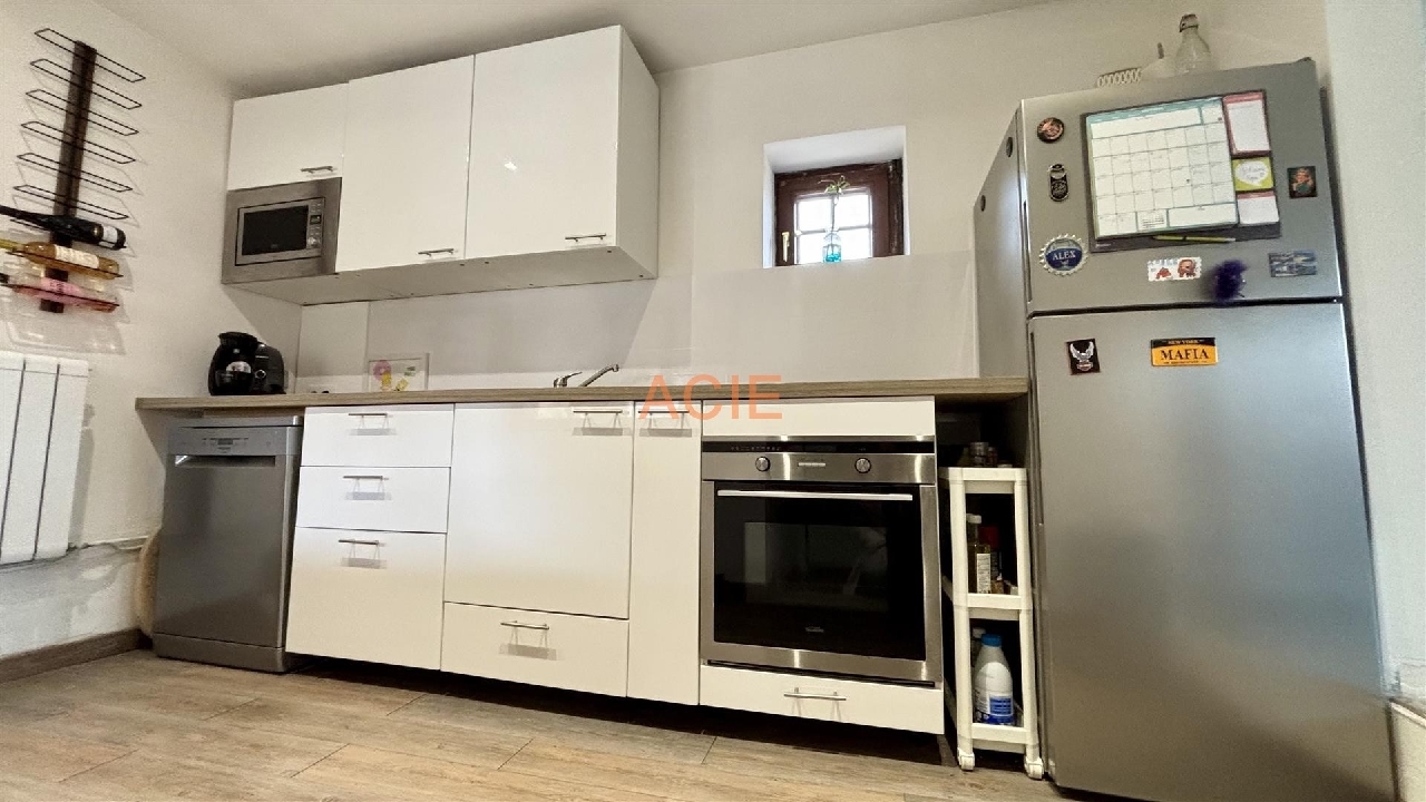 Entrée, cuisine toute équipée, une chambre, salon, salle d'eau spacieuse, wc indépendant. RDJ aménagé avec une seconde chambre, un bureau ou possibilité troisième petite chambre, chaufferie.
