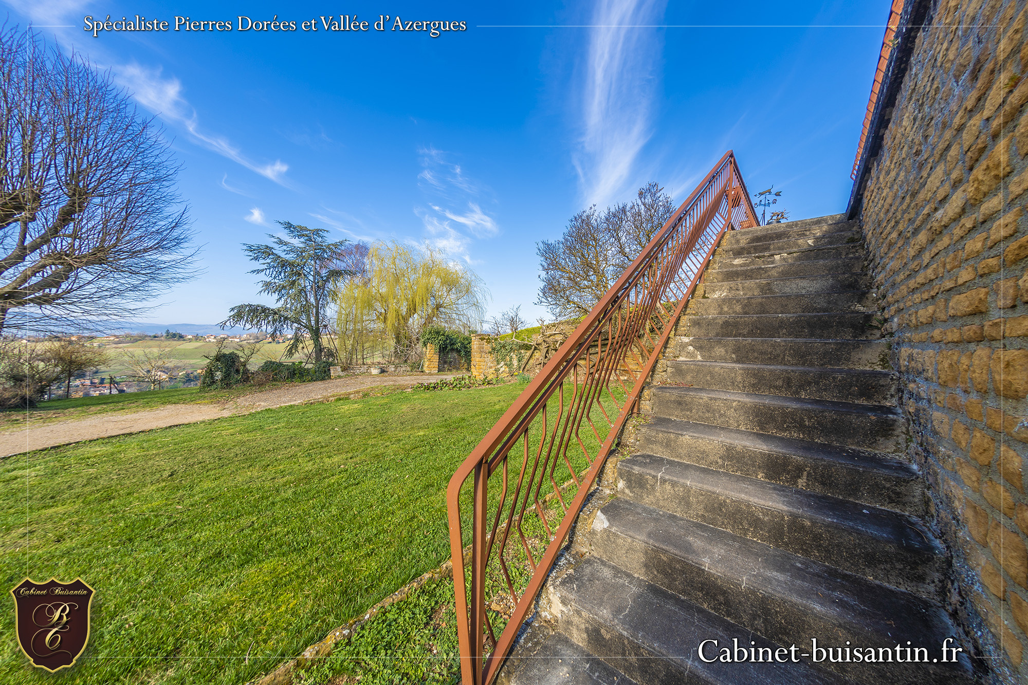 EXCLUSIVITE - THEIZÉ - Charme de la pierre et horizons dégagés en plein coeur du Beaujolais. Laissez-vous séduire par l'authenticité de cette bâtisse en pierres, nichée dans un hameau paisible où le calme est roi. Offrant une vue dégagée sur la nature environnante. L'espace de vie s'articule autour d'un séjour chaleureux avec cheminée donnant sur une vaste terrasse avec vue dominante, d'une cuisine indépendante.Prolongé par 3 chambres confortables, un bureau, 2 salles d'eau. Un ancien dortoir ainsi que des combles aménageables de 140 m2 offrent un potentiel d'agrandissement exceptionnel pour réaliser tous vos projets (atelier d'artiste, suite parentale, salle de jeux).Un garage, un cuvage, un atelier et une cave complètent ce bien. Le tout sur un terrain de 1036 m2 aménagé en cour intérieure, espace pelouse/détente. Des travaux sont à prévoir pour mettre pleinement en valeur ce bien de caractère.