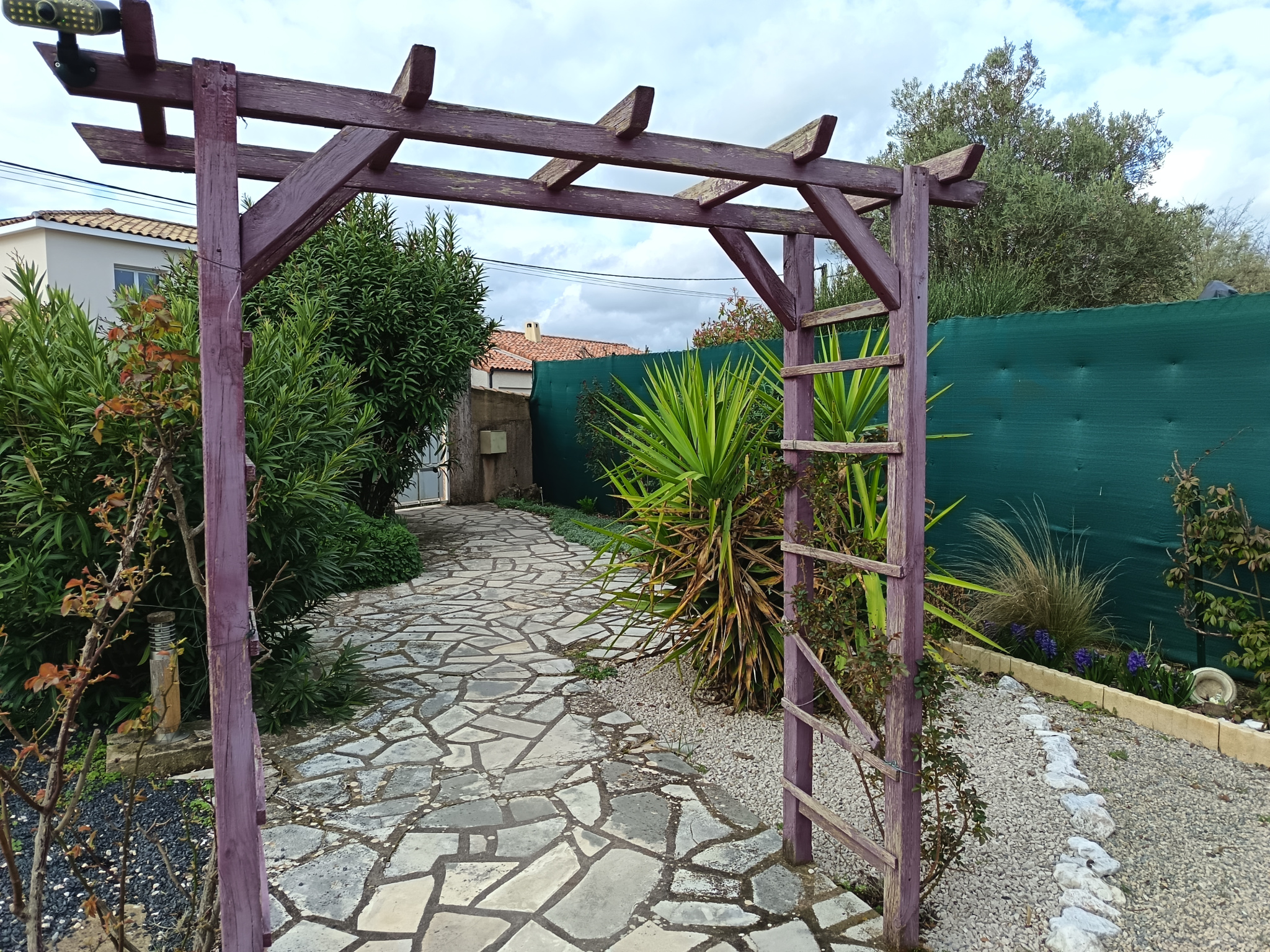 Sa composition est simple , la maison est mitoyenne de deux cotés offrant une cuisine neuve aménagée et équipée ouverte sur un séjour lumineux donnant sur une terrasse . Climatisation réversible .