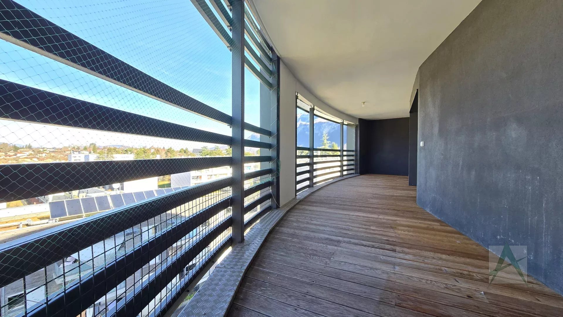 Sur les hauteurs de Chambéry, au calme, T3 de 62 m² loi carrez au sixième et avant dernier étage avec terrasse. Immeuble de 2010, cet appartement se compose d'un sejour-cuisine, deux chambres, accès terrasse avec vue panoramique, salle de douches et WC séparé.