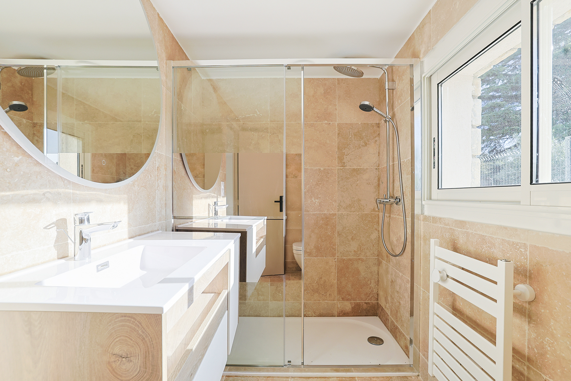 L'étage dessert quatre chambres climatisées, dont une seconde suite parentale avec sa salle de bains privative (baignoire + douche). Vous y trouverez également une salle de bains indépendante, un WC séparé et un espace ouvert donnant accès à une terrasse (idéal bureau ou salle de jeux).