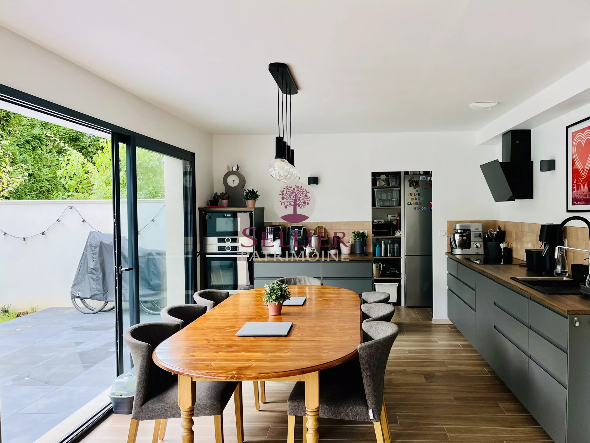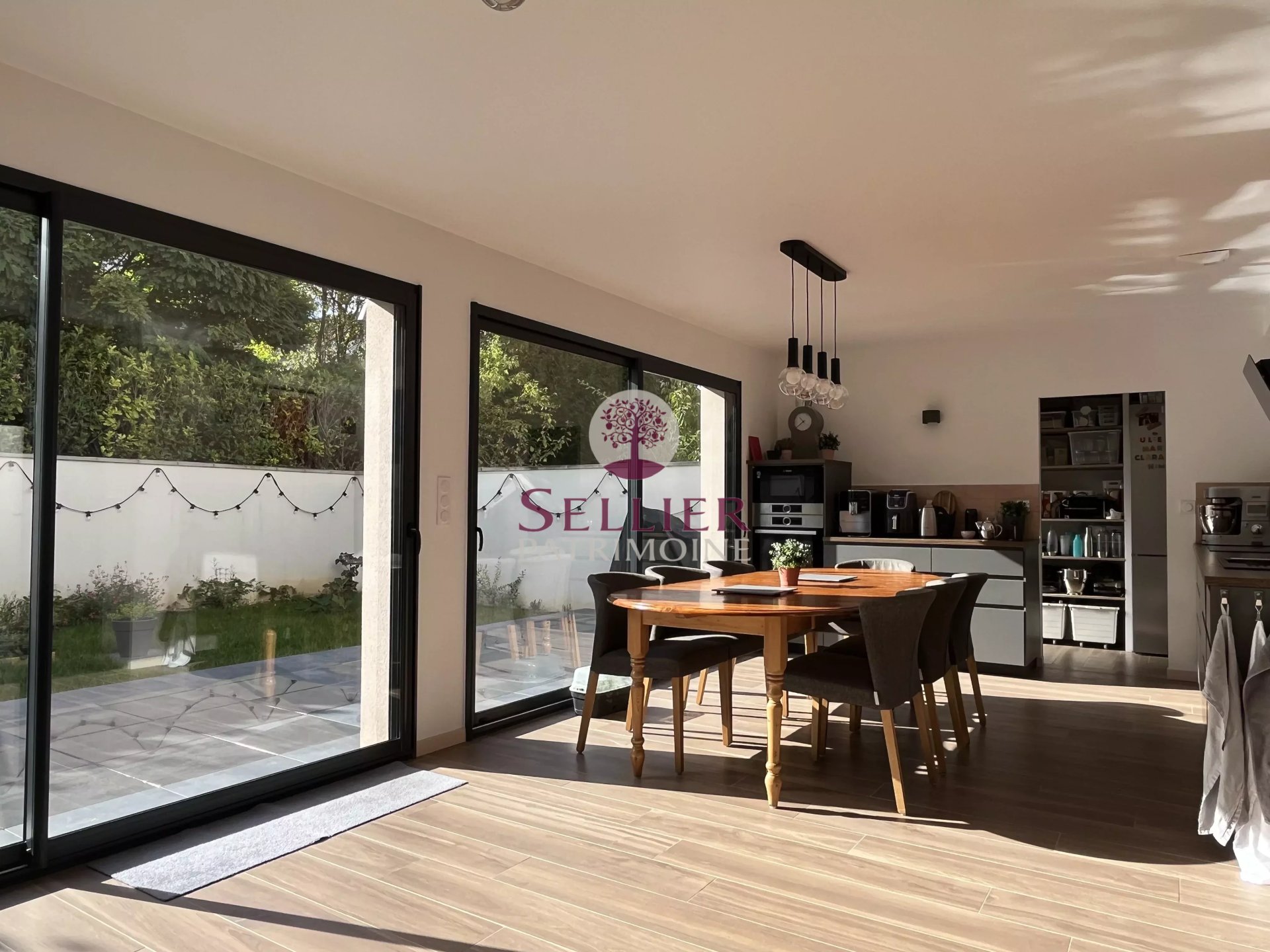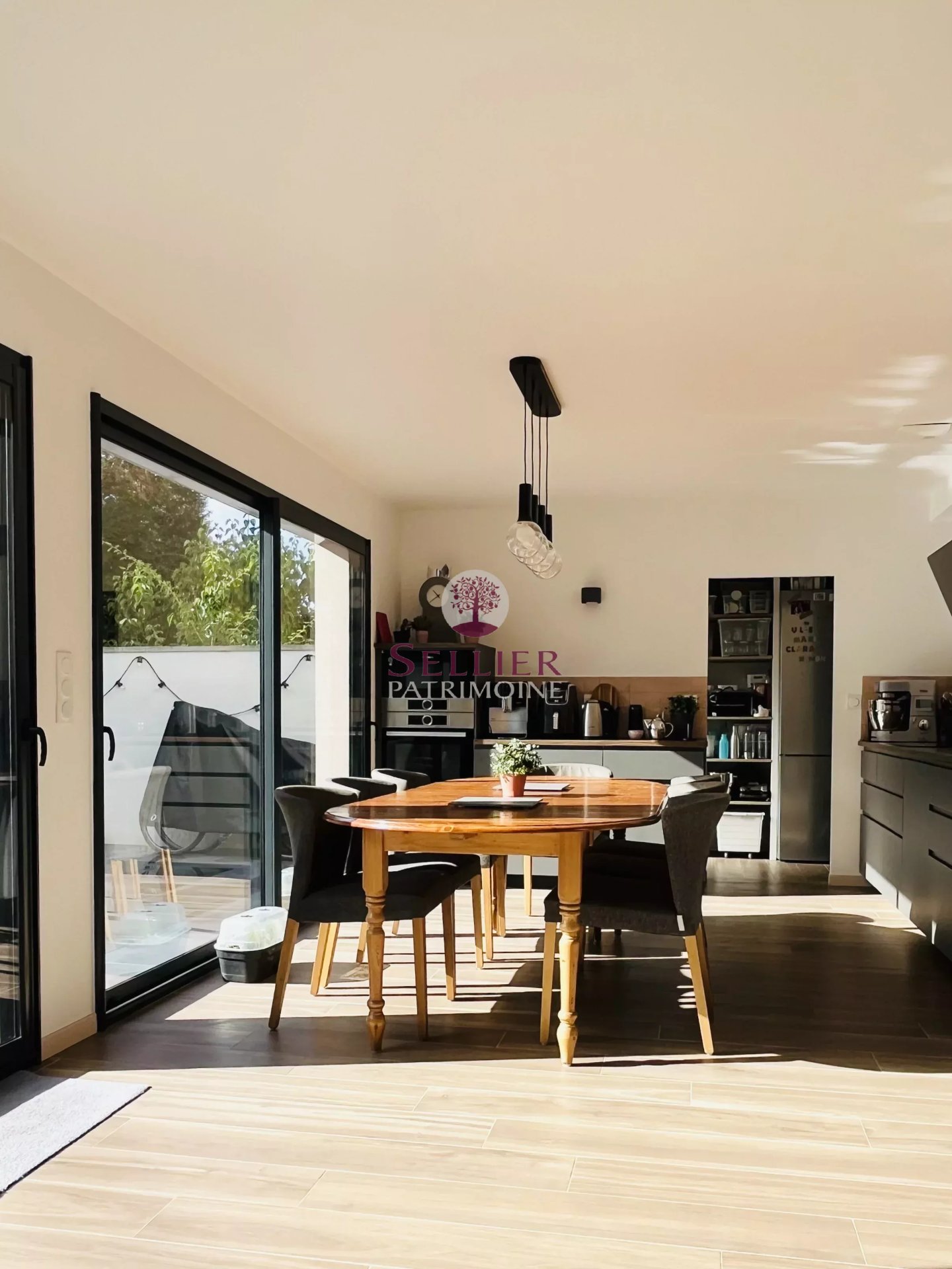 Implantée dans un cadre calme et arboré, la maison bénéficie d’une exposition Sud-Ouest ouvrant largement sur terrasse et jardin paysager, pour une luminosité optimale jusqu’au coucher du soleil.