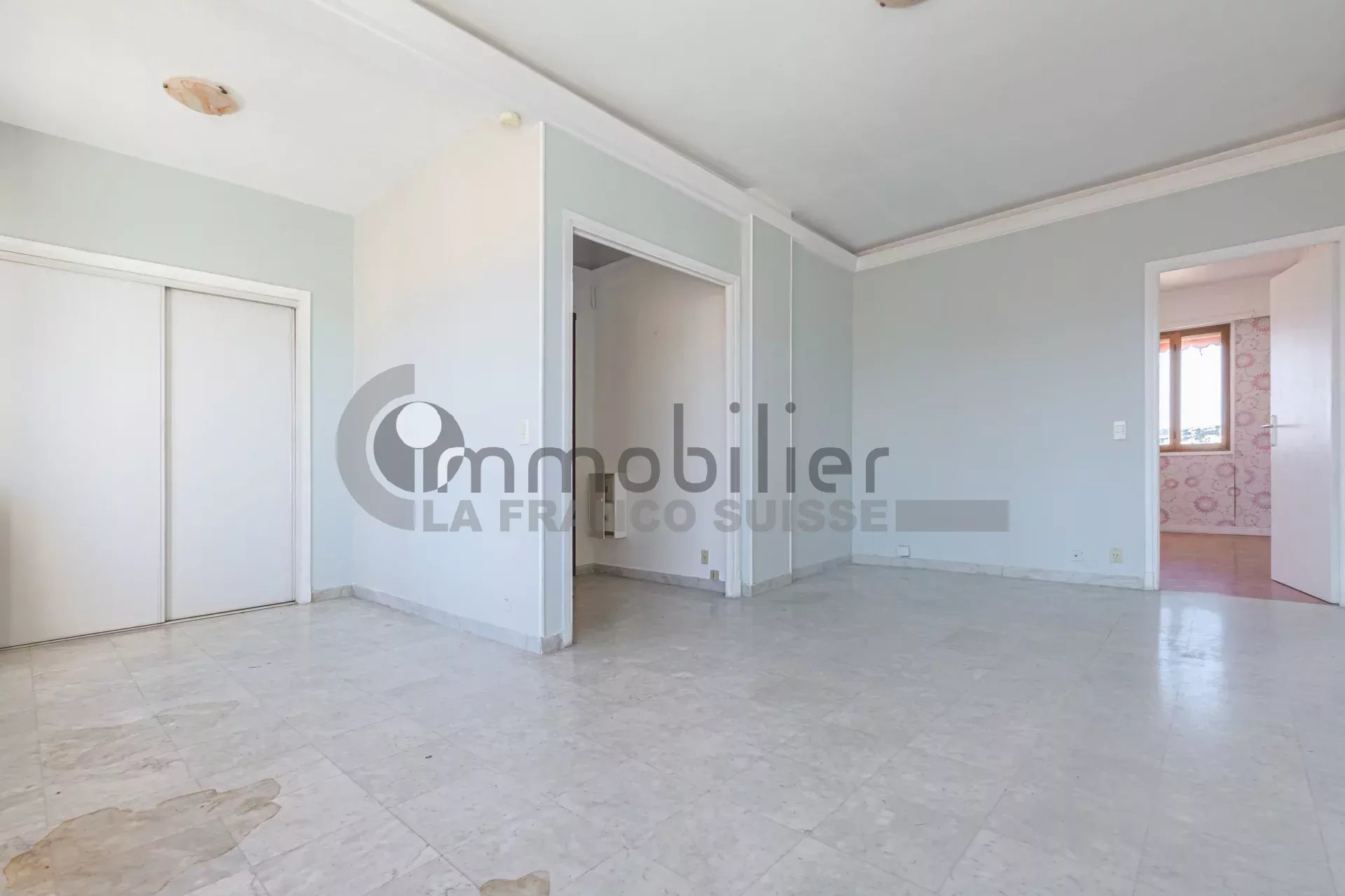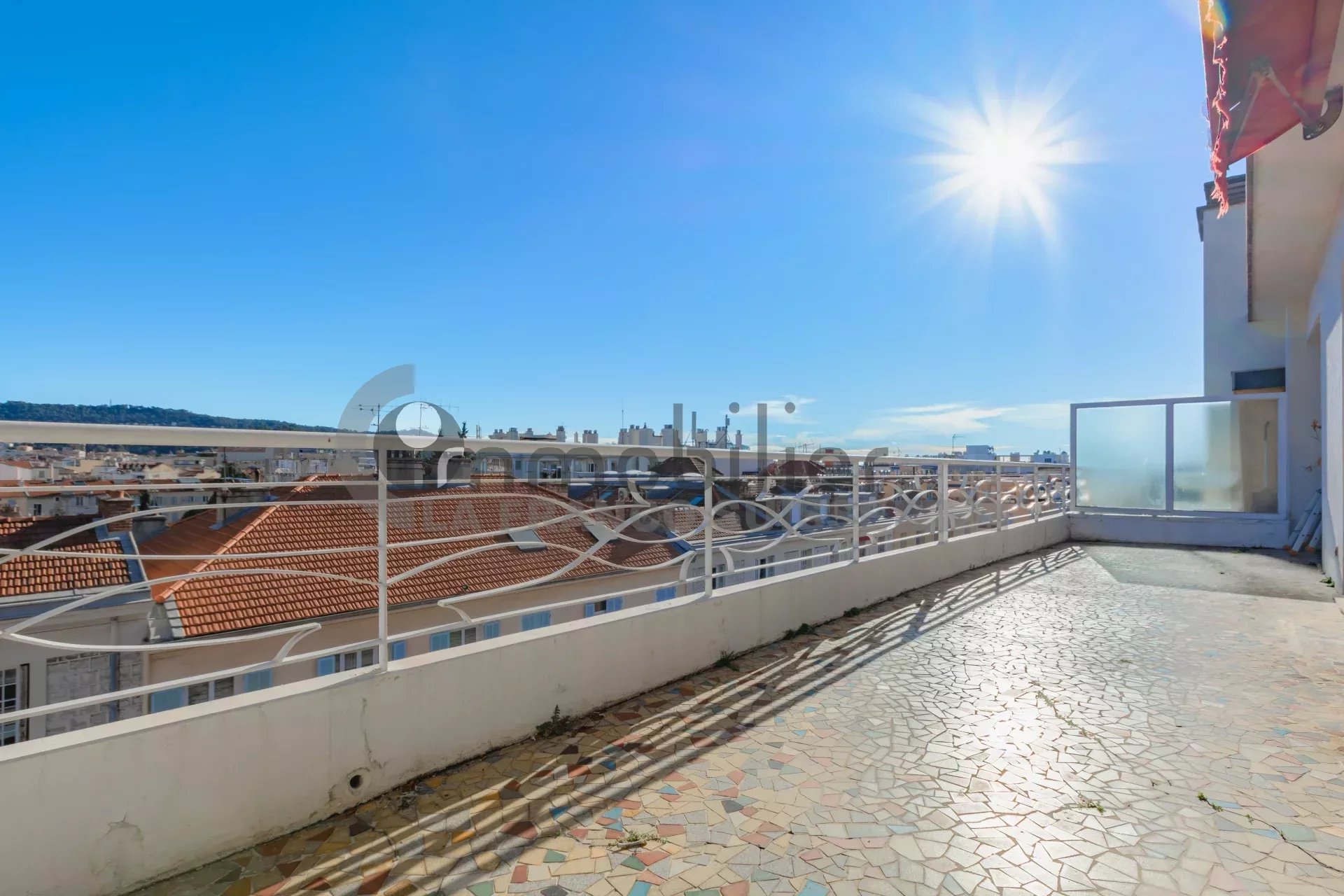 RARE!!! Appartement de 53.38m² traversant E/O avec terrasse de 25m² et balcon, vue dégagée panoramique sur la ville, les montagnes et la mer, vendu avec une cave. Aménageable en 3p, projet étudié par un architecte; plan, perspectives et devis disponibles en agence.