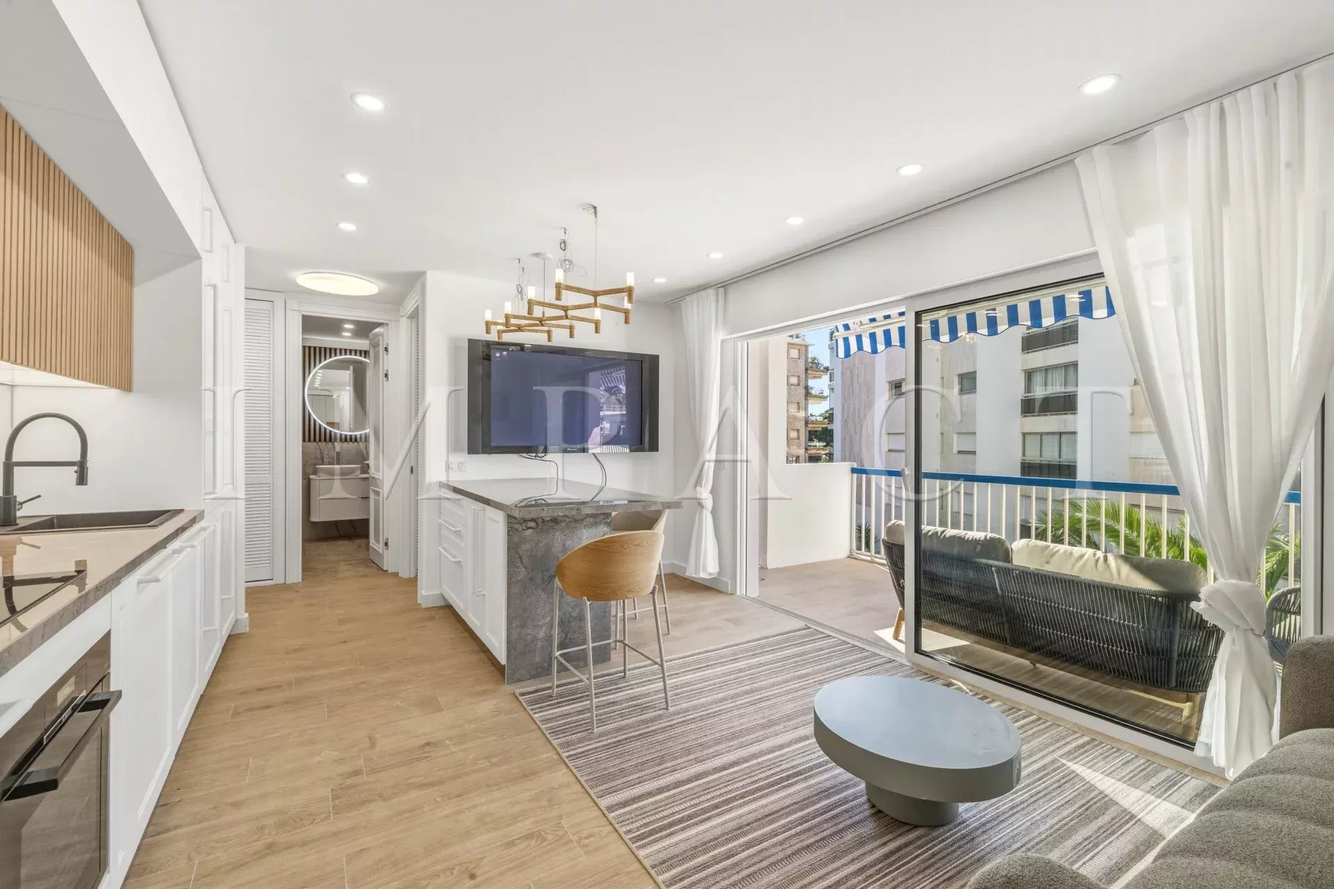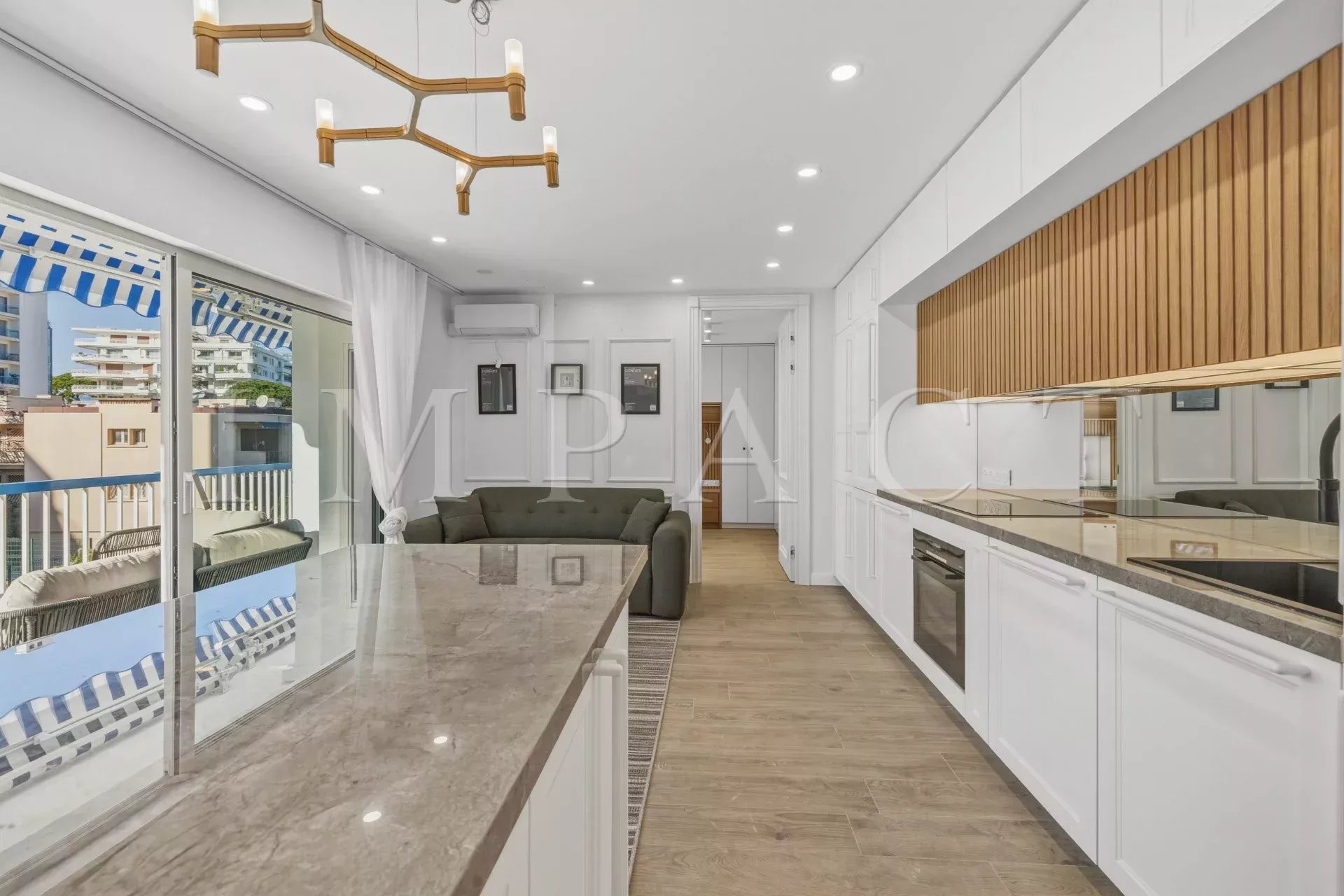 Appartement 3 pièces de 51m2 exposé Ouest entièrement rénové avec des prestations de qualité, situé à 2 min à pieds des plages dans un domaine privé et sécurisé du Palm Beach. Cette résidence bénéficie d'un gardien.