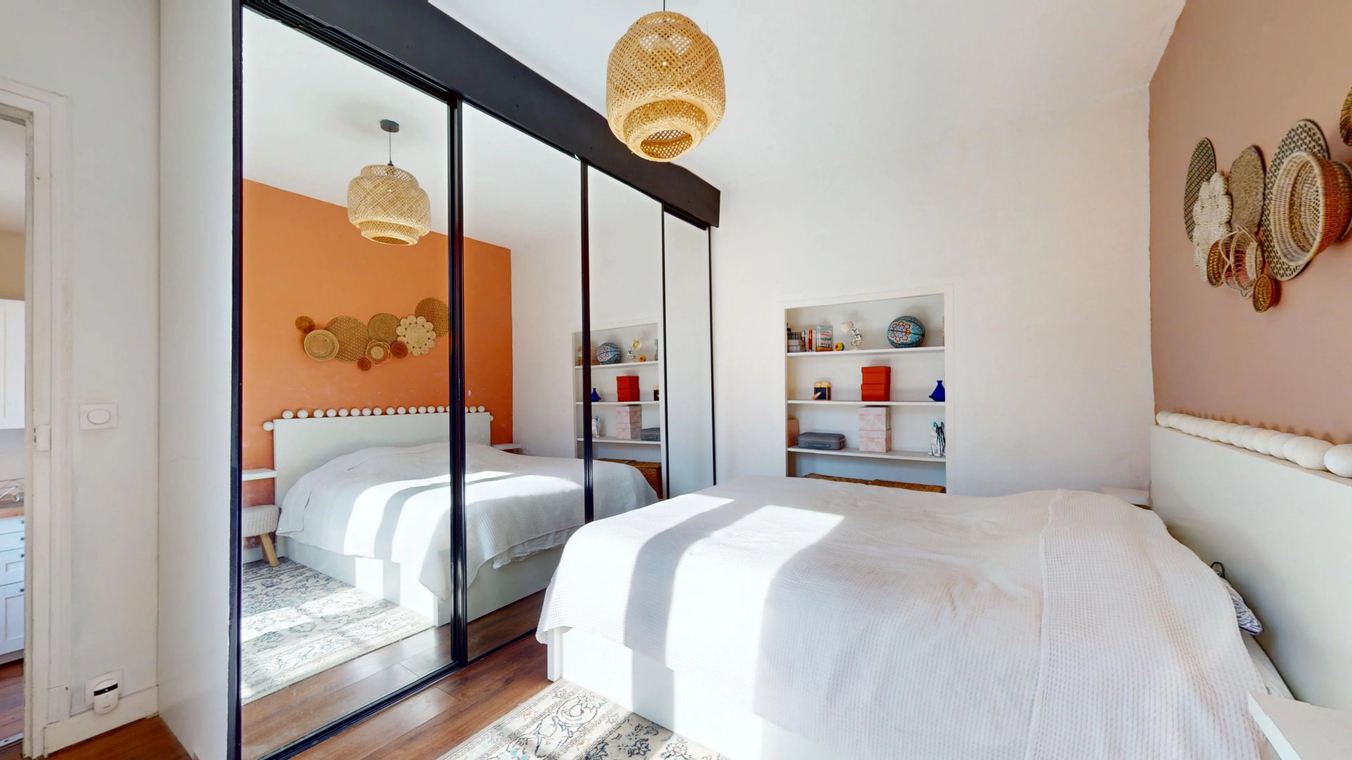 La partie nuit se compose d’une grande chambre de plus de 12 m² avec dressing, accompagnée de sa salle d’eau et de son WC.