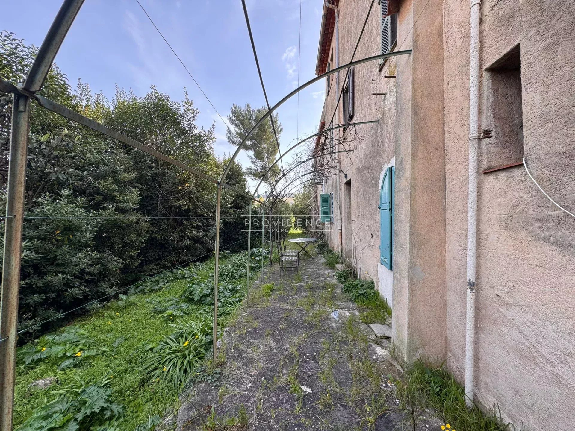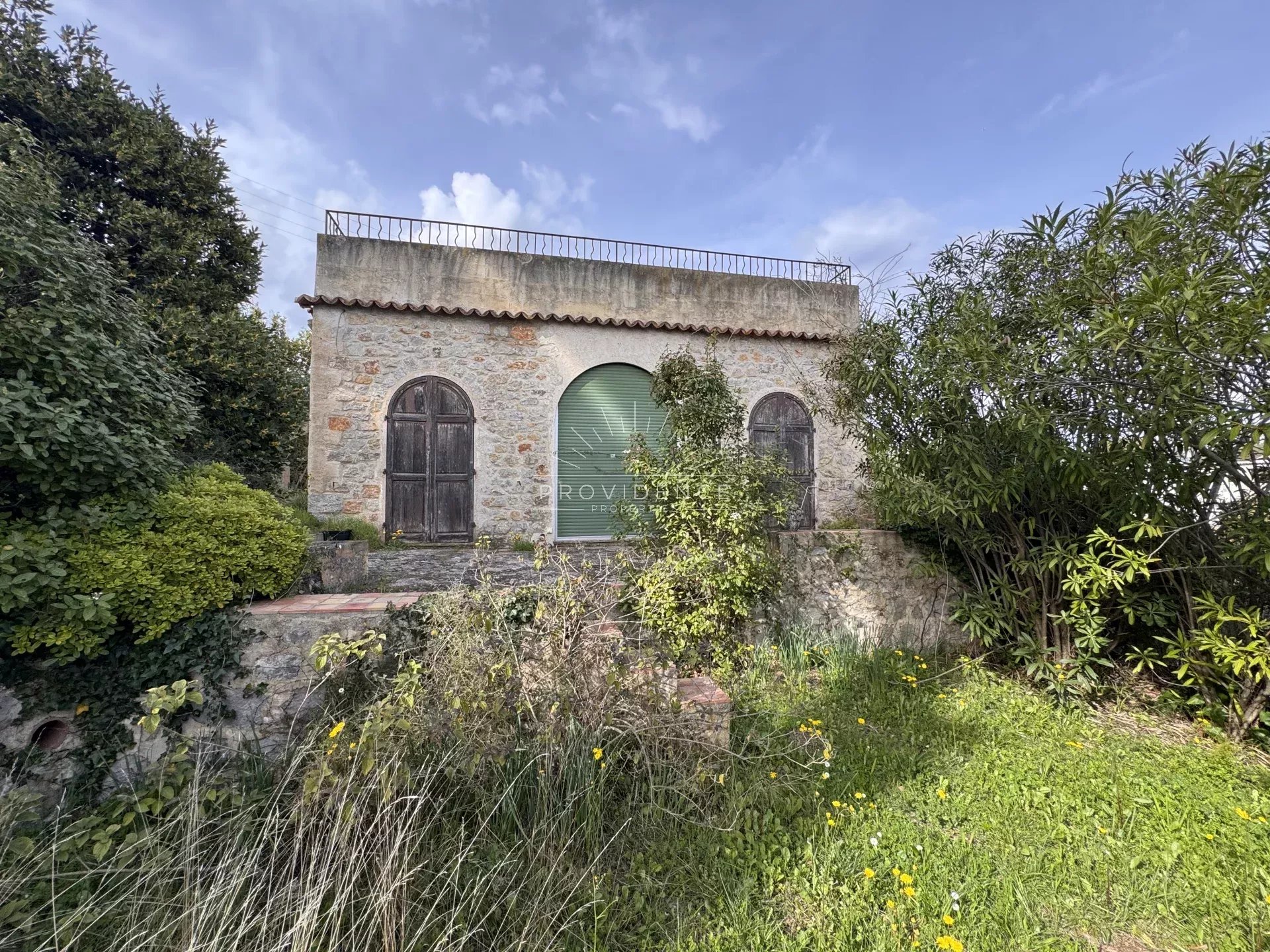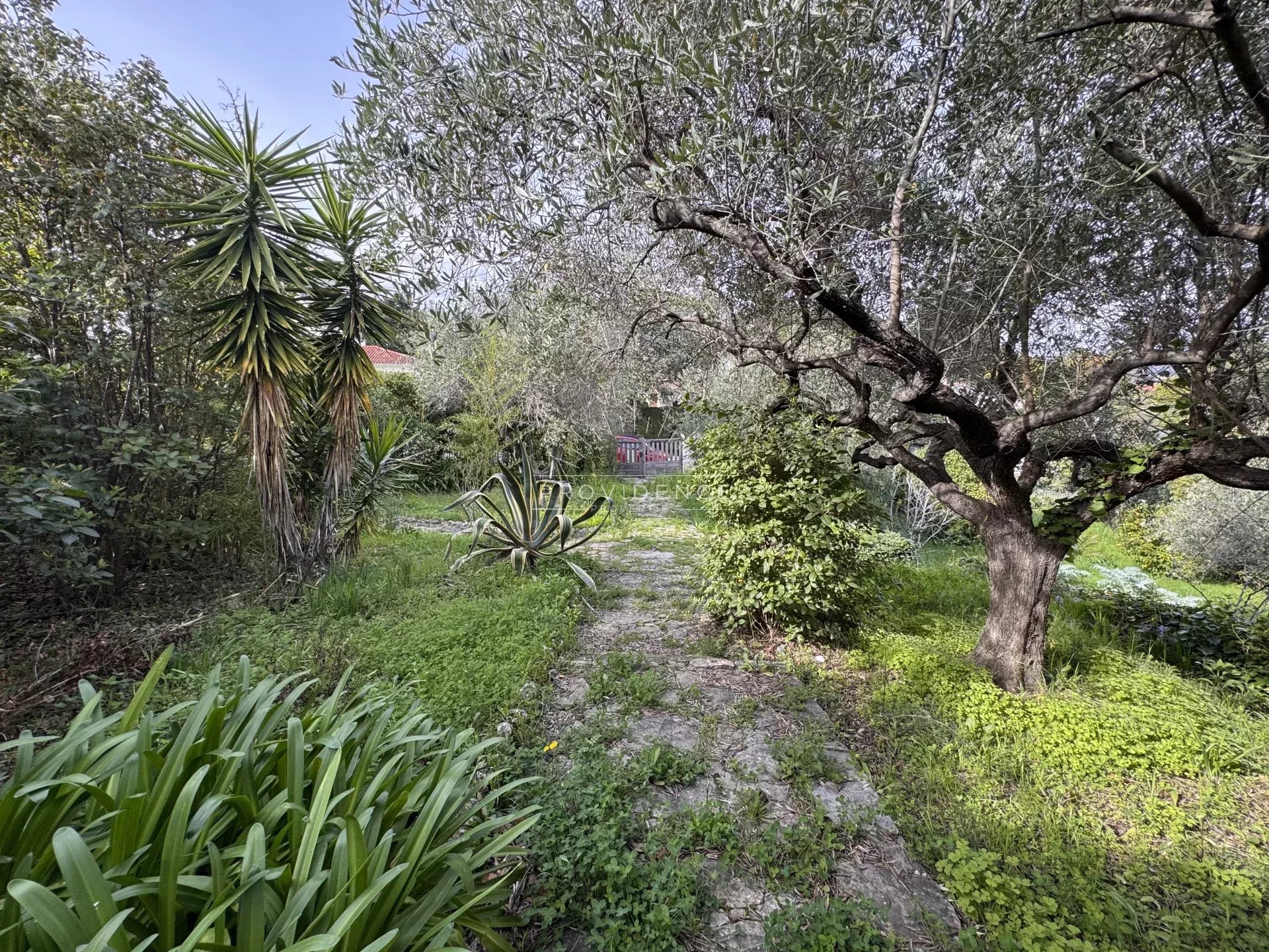 Implantée sur un terrain en restanques d’environ 1 900 m², la propriété bénéficie d’un environnement verdoyant et paisible, ainsi que d’une vue dégagée jusqu’à la mer et aux collines environnantes.