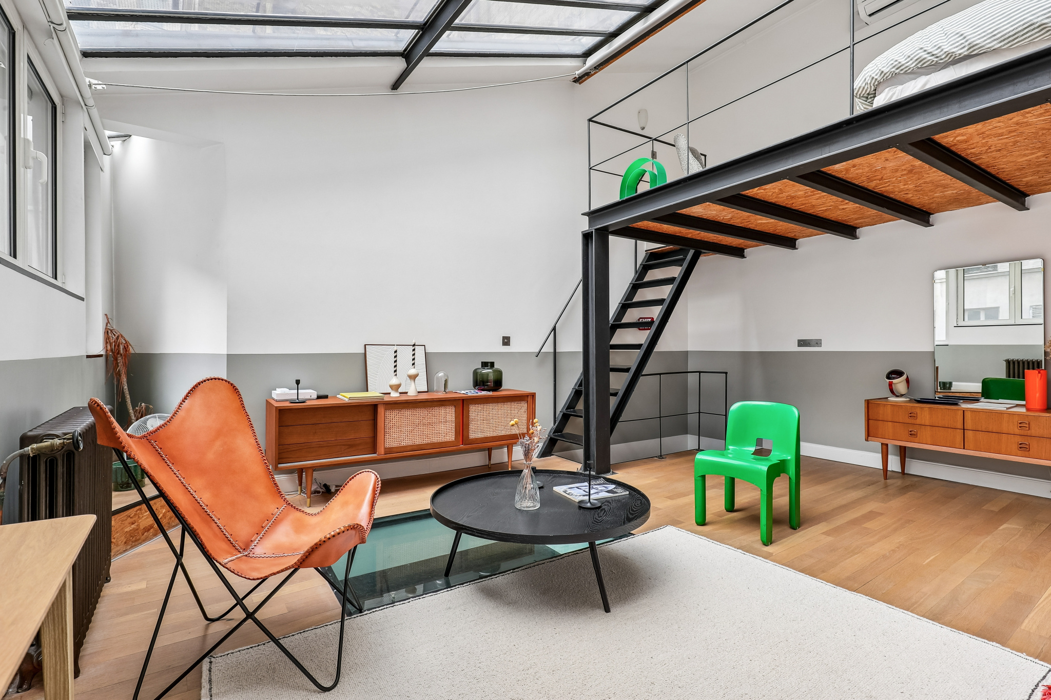 Dès l'entrée, vous serez séduit par l'atmosphère unique de ce lieu. Pensé comme un véritable cocon urbain, l'appartement se distingue par une luminosité remarquable, sublimée par de larges ouvertures et une hauteur sous plafond qui rappelle son passé d'atelier. La lumière naturelle circule généreusement dans les espaces, créant une ambiance chaleureuse et élégante tout au long de la journée.
