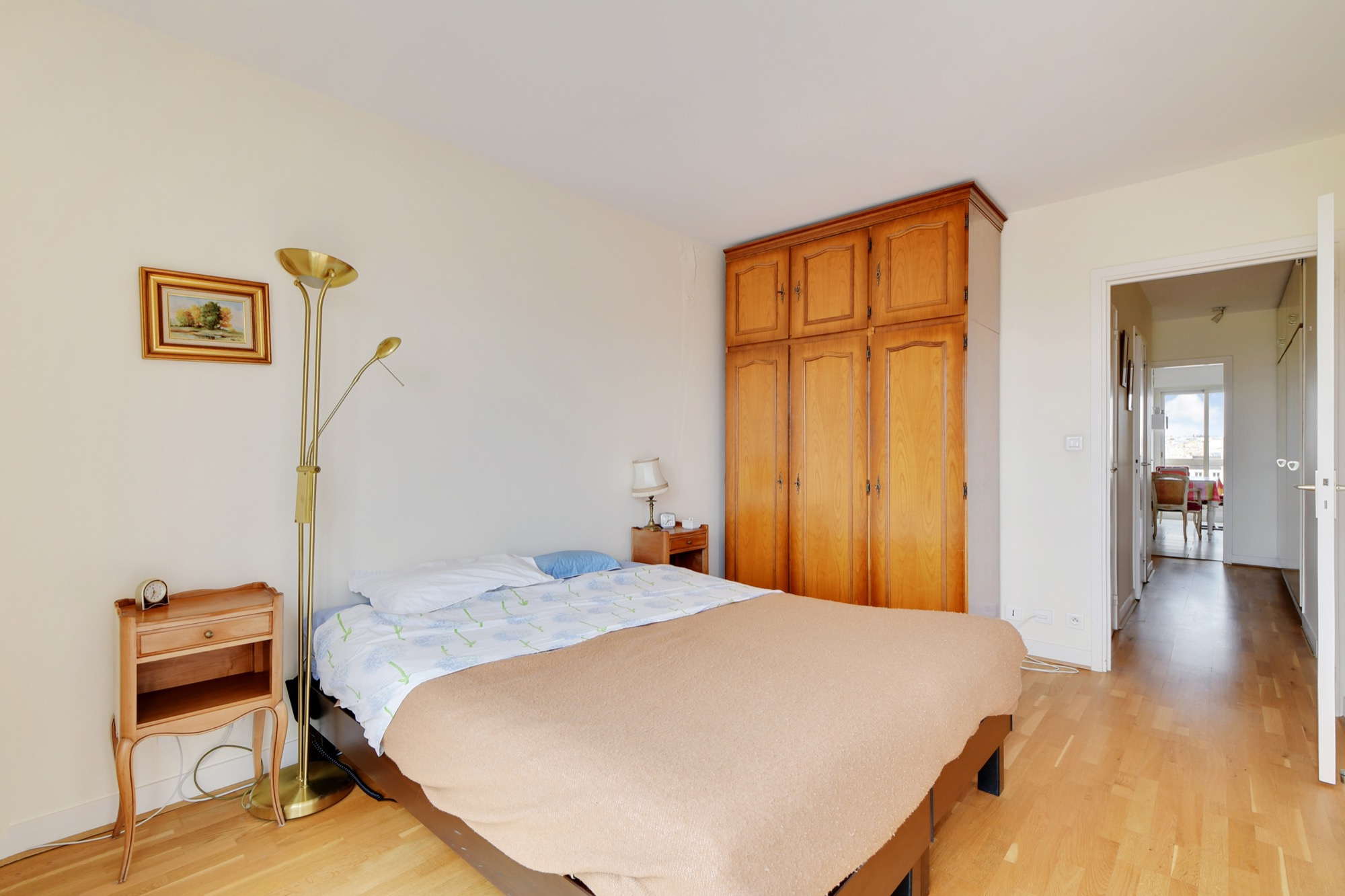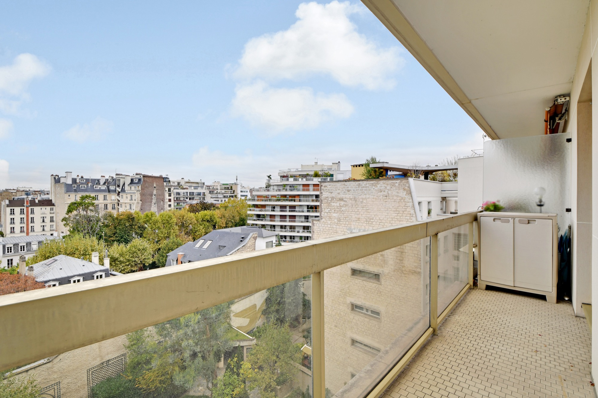 Situé au 7ème étage avec ascenseur, l'appartement exposé sud-est comporte une entrée avec rangements et WC invités, un double séjour avec balcon, vue dégagée sur tour Eiffel, une chambre avec porte coulissante attenante au séjour avec balcon, rangements, une salle d'eau avec douche à l'italienne et WC, une chambre avec rangement et balcon.