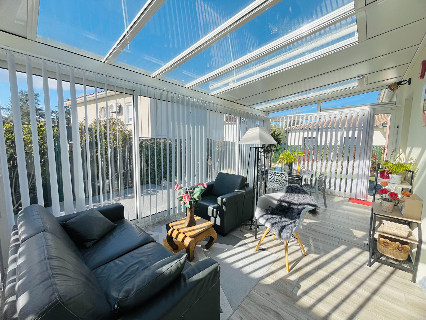 Le séjour donne sur une jolie véranda (2020) d'environ 18m², avec store éléctrique.