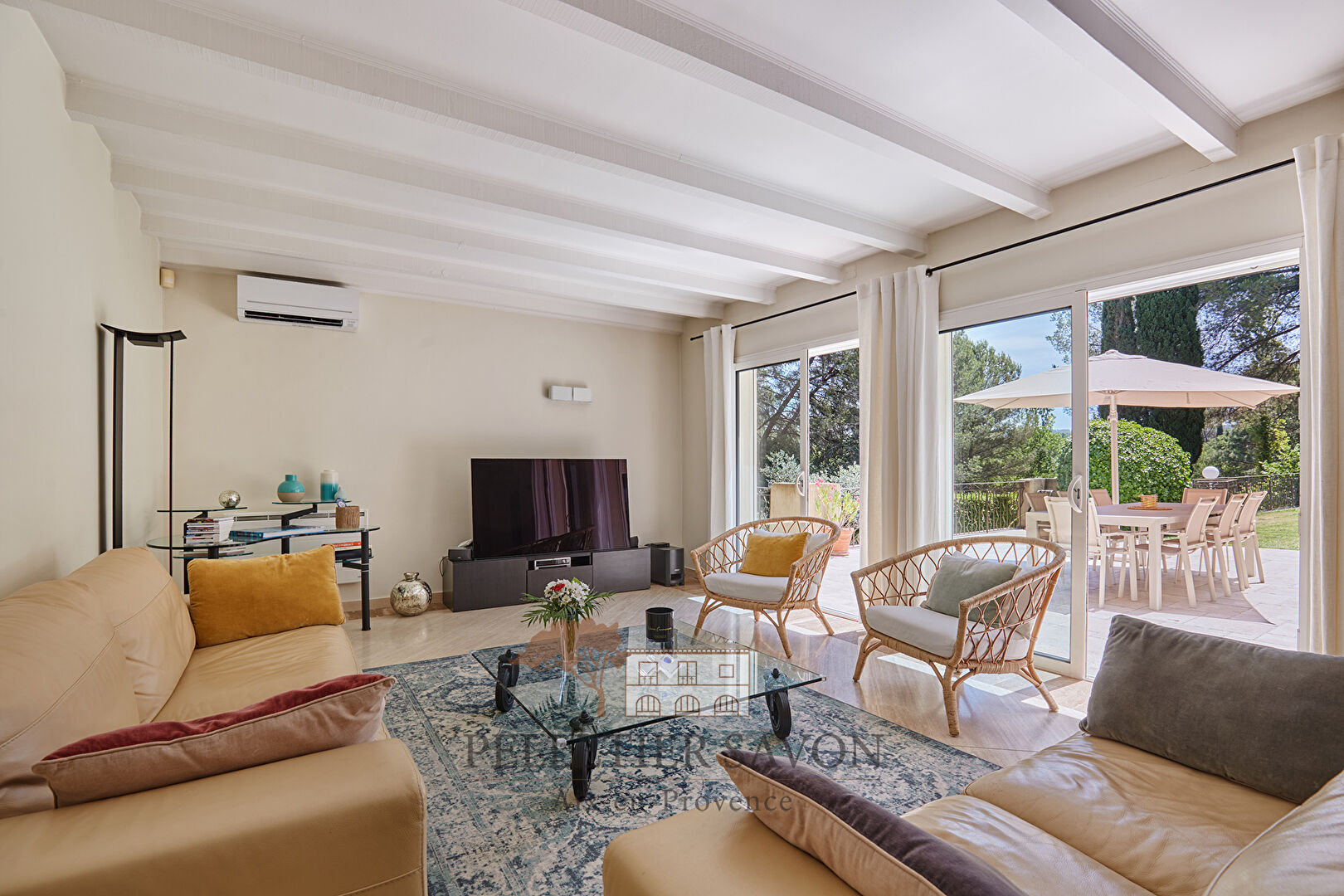 À l'extérieur, le pool house et la piscine chauffée prolongent les espaces de vie et invitent aux moments de convivialité, dans un cadre typiquement provençal.