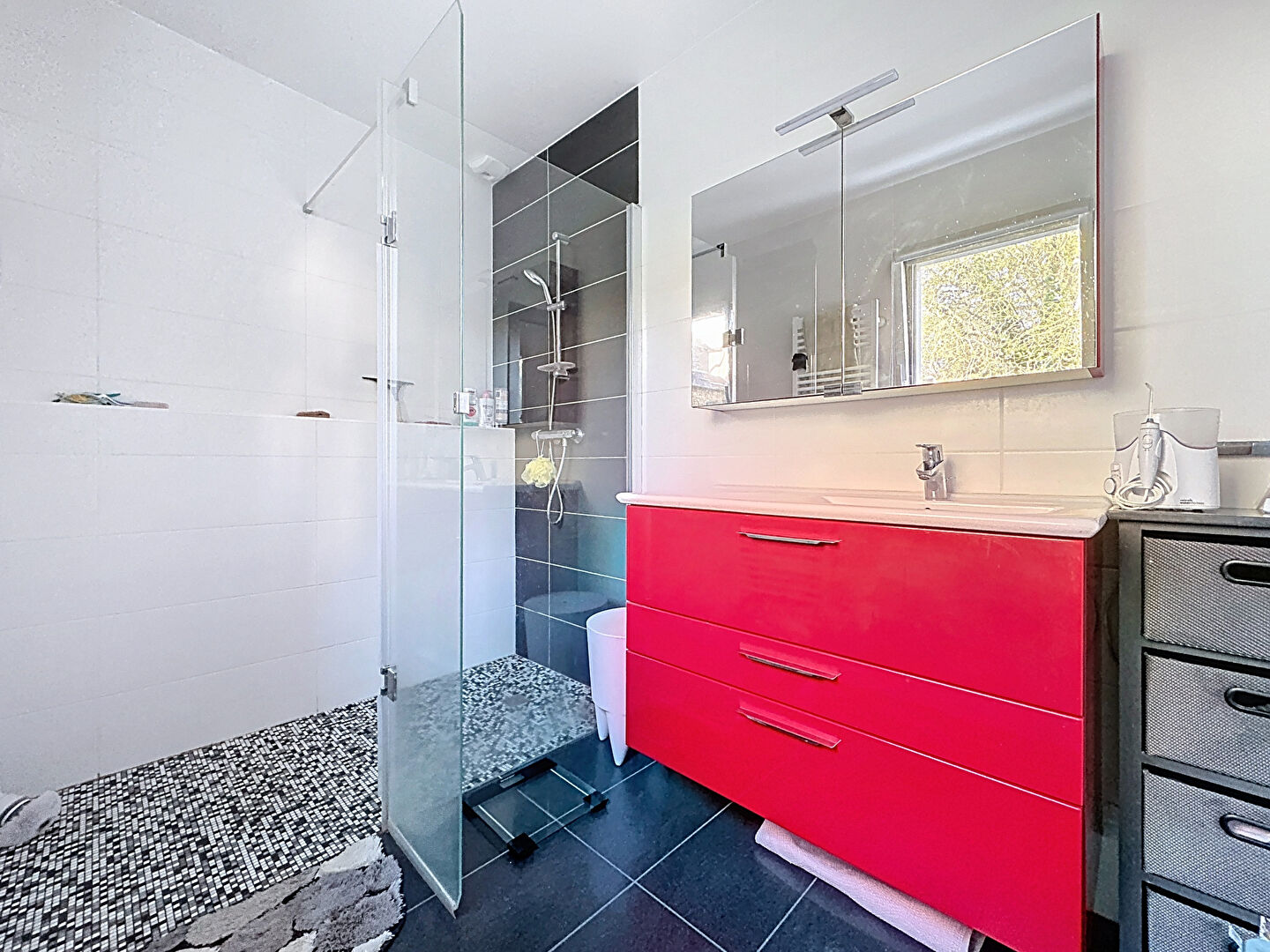 La maison développe une surface habitable d'environ 142 m² et propose cinq pièces harmonieusement agencées, dont trois chambres, parmi lesquelles une suite parentale offrant confort et intimité. L'ensemble se déploie sur un seul niveau, ce qui rend le bien particulièrement fonctionnel au quotidien et parfaitement adapté aux personnes à mobilité réduite. La cuisine, très soignée, s'intègre parfaitement à l'esprit contemporain de la maison et participe pleinement à la convivialité des lieux.