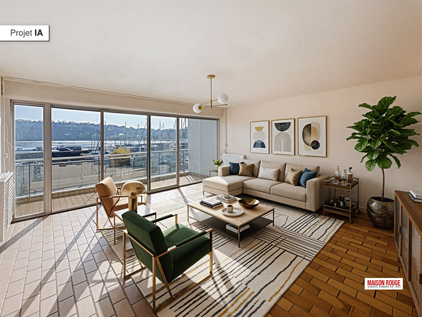 Un escalier privatif vous conduit ensuite à l'espace de vie situé au niveau inférieur, composé d'un salon lumineux et d'une grande cuisine de 18 m² pouvant aisément accueillir un espace salle à manger convivial. Là encore, la vue sur le port de plaisance s'invite dans votre quotidien et transforme chaque moment en véritable tableau vivant au rythme des marées et des bateaux. Un cellier complète ce niveau pour un confort de rangement appréciable.