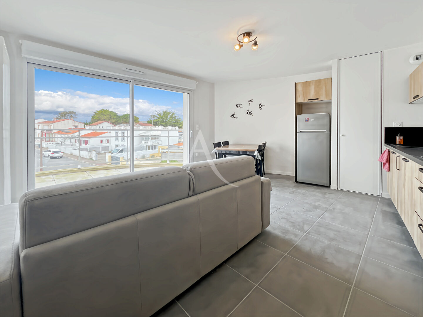 EXCLUSIVITÉ - A VENDRE - SAINT JEAN DE MONTS: votre agence vous propose ce bel appartement de 2 pièces de 38.82 m², situé dans une Résidence récente avec ascenseur. Il se compose d'une entrée, d'un séjour lumineux avec cuisine aménagée et équipée, d'une chambre, ainsi que d'une salle d'eau avec wc. Vous profiterez également d'un balcon, d'une cave et d'un parking couvert