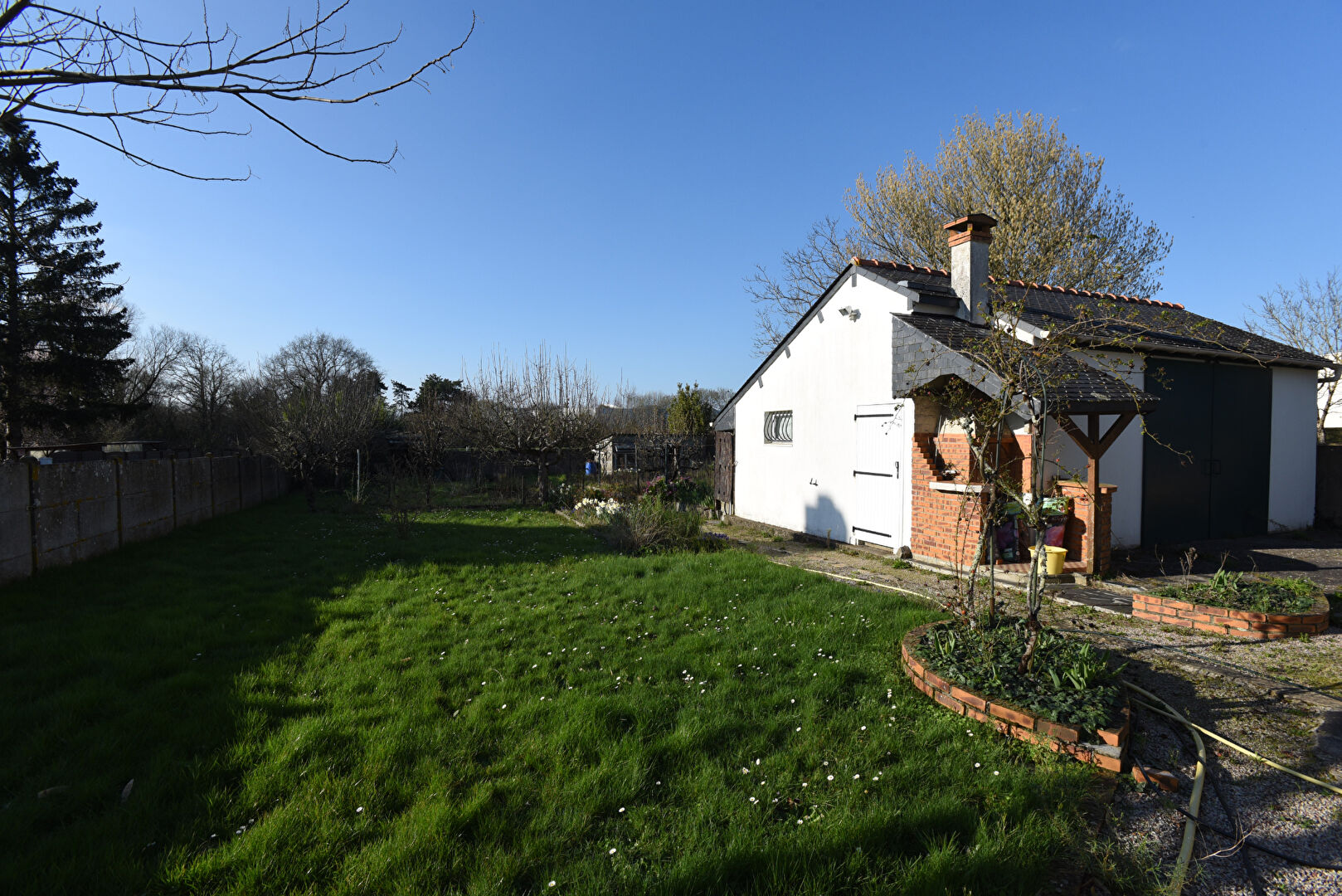 SUR LA PARCELLE, VOUS POURREZ PROFITER D'UN GARAGE DE 40 M² CONSTRUIT EN PARPAINGS, AVEC UNE TOITURE EN ARDOISES NATURELLES.
