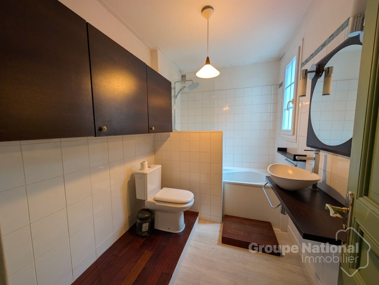 Maison de ville de 5 pièces comprenant au rez de chaussée: entrée avec placard, séjour, cuisne amenagée, WC, accès terrasse.