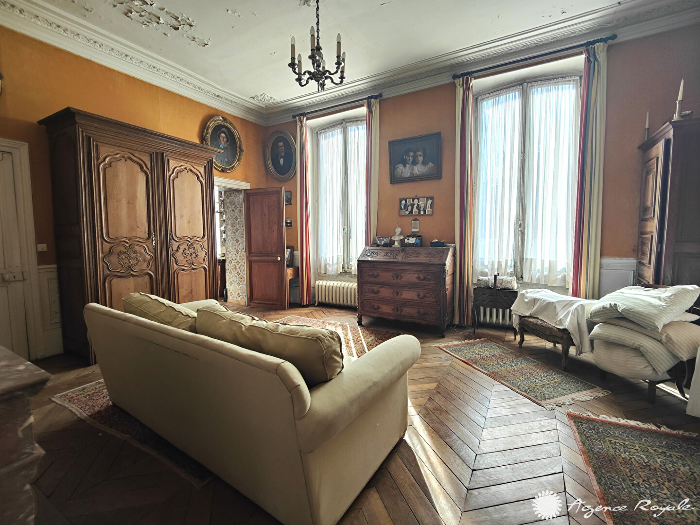 Dans Hôtel particulier, Bel Appartement de 153m² comprenant : Belle Entrée, 2 Salons (72m²) dont un avec vue sur JARDIN avec parquet point de Hongrie, moulures, cheminées et belle hauteur de plafond de 3m45, Cuisine avec Salle à Manger 30m², 2/3 Chambres possibles, Salle de Bains avec fenêtre, Salle de Douche possible, Cave et PARKINGS dans la cour. Logement en consommation excessive. Nombreuses possibilités d'aménagements, accès au Parc de 2800m², Proche du Parc du Château.