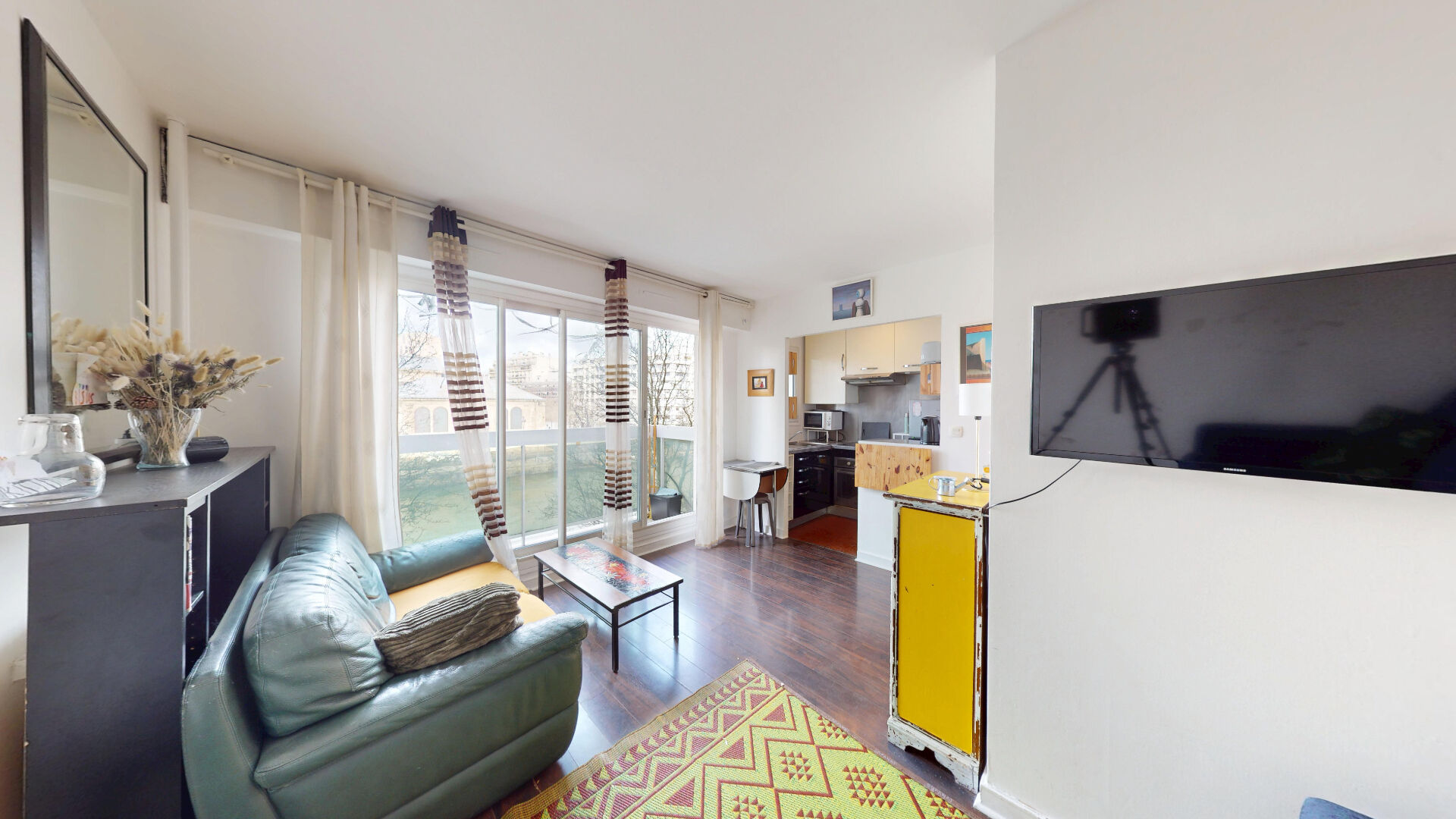 Situation exceptionnelle, vue directe sur le canal de l'Ourcq, au début du quai de la Marne, au sein d'un immeuble en parfait état récemment ravalé avec ascenseur et gardien, au deuxième étage, studio de 23m² avec disposition optimale.