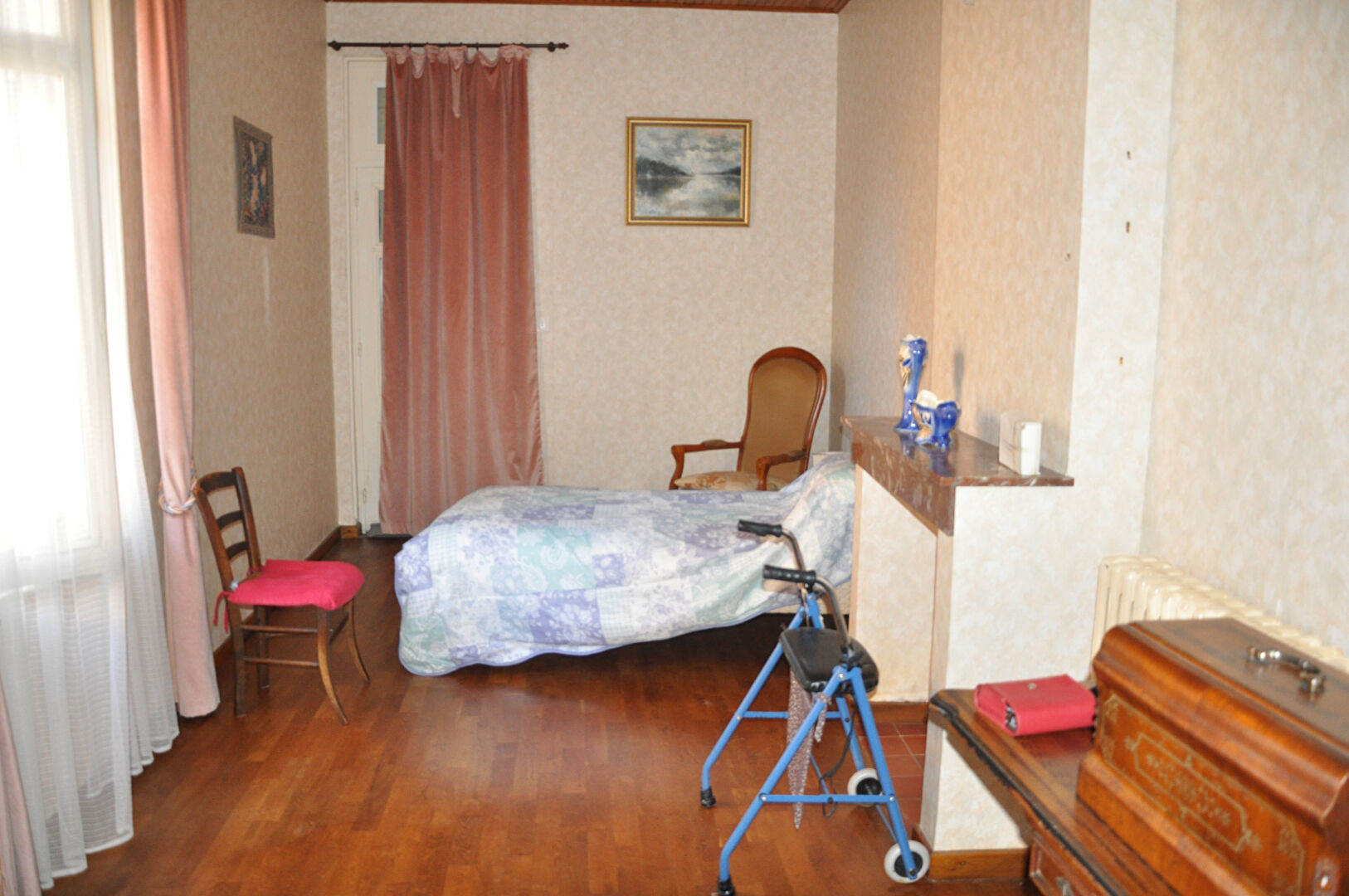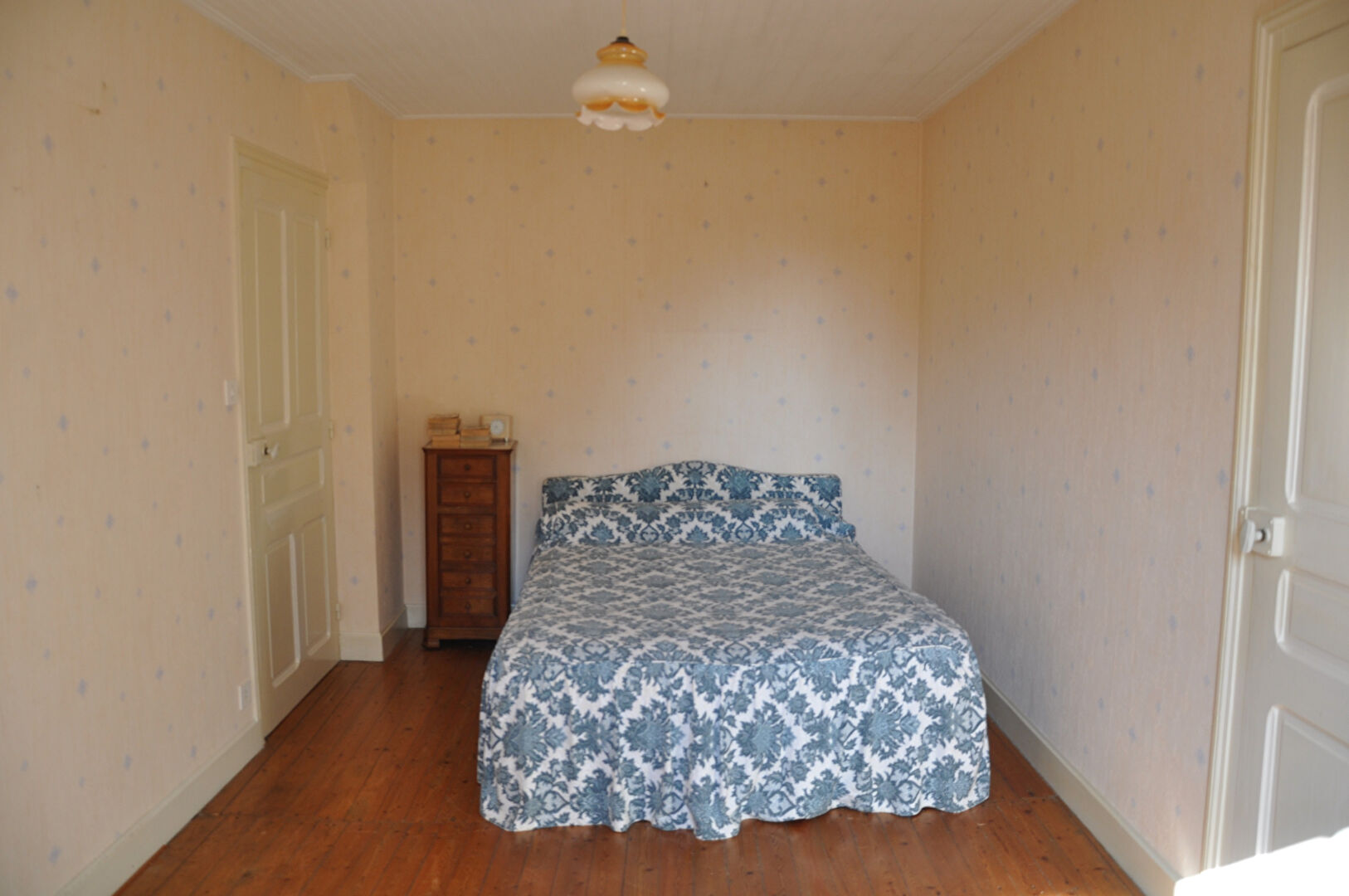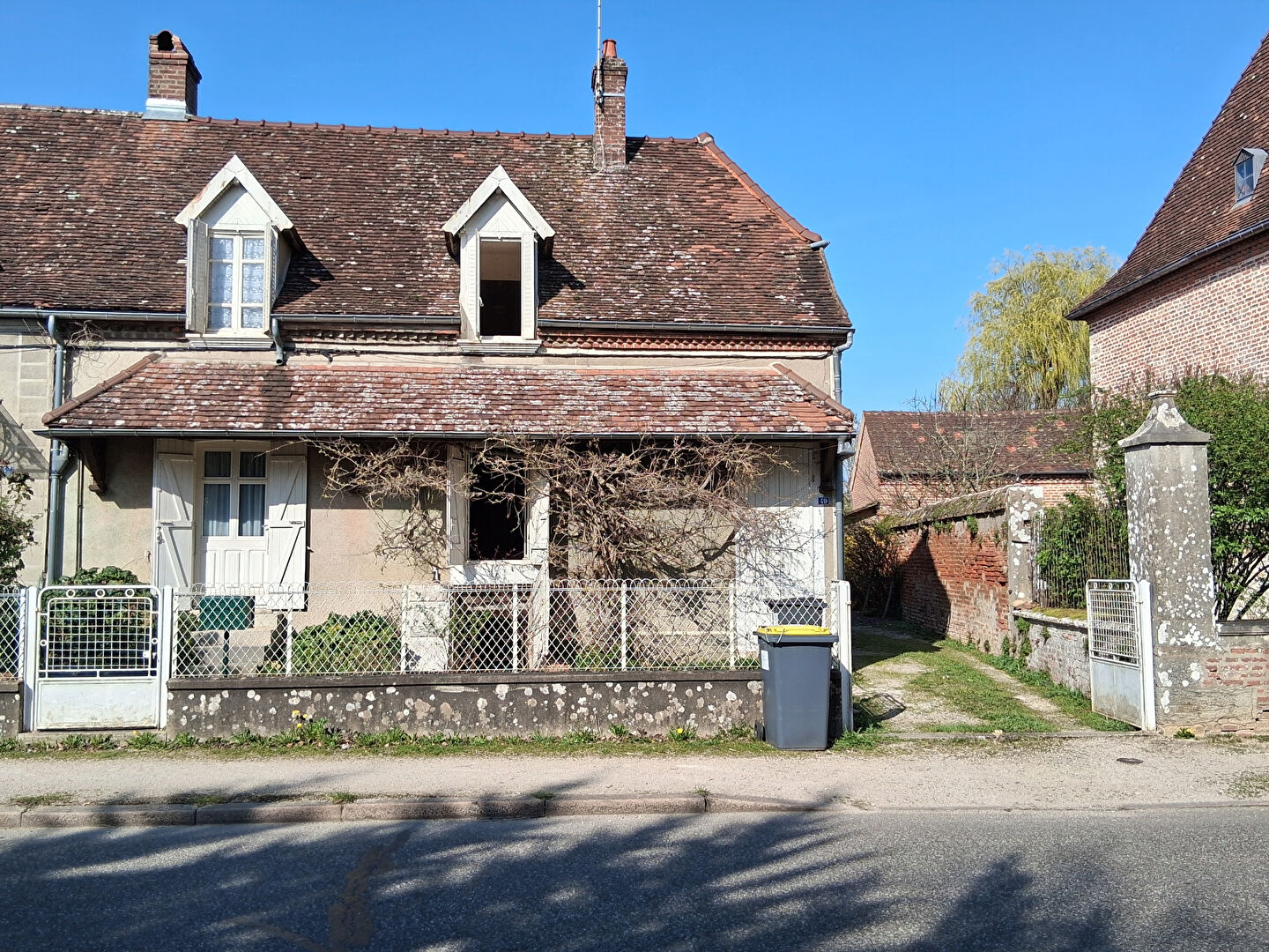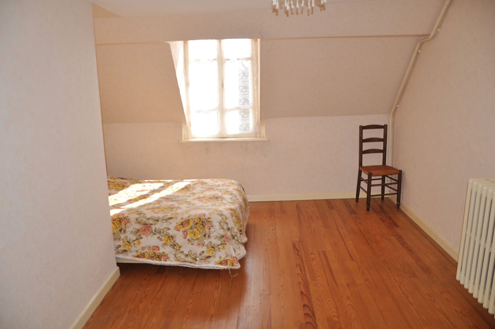 Au bourg, maison de village mitoyenne sur un côté, à conforter,comprenant sur 143m² habitable, entrée séjour - salon avec cheminée-insert, cuisine, une grande chambre, salle d'eau/WC, cellier, coin chaufferie ; à l'étage : 3 chambres dont deux en enfilade et grenier. Chauffage central au gaz de ville; cave, garage indépendant et appentis. Le tout sur 1409m² et terrain en partie clos.