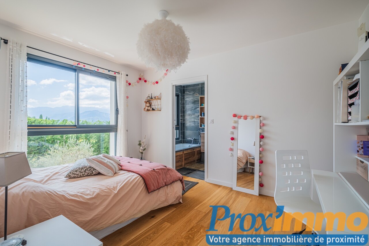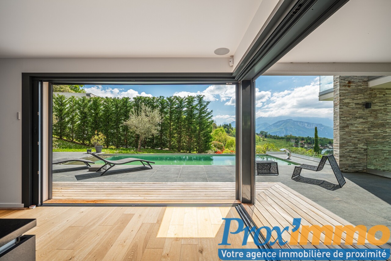 Située en pleine nature sur les hauteurs, cette magnifique villa contemporaine d'exception de 210 m², comprenant également des dépendances, une piscine chauffée, un jacuzzi et une vue panoramique imprenable sur la Chartreuse et le Vercors.
