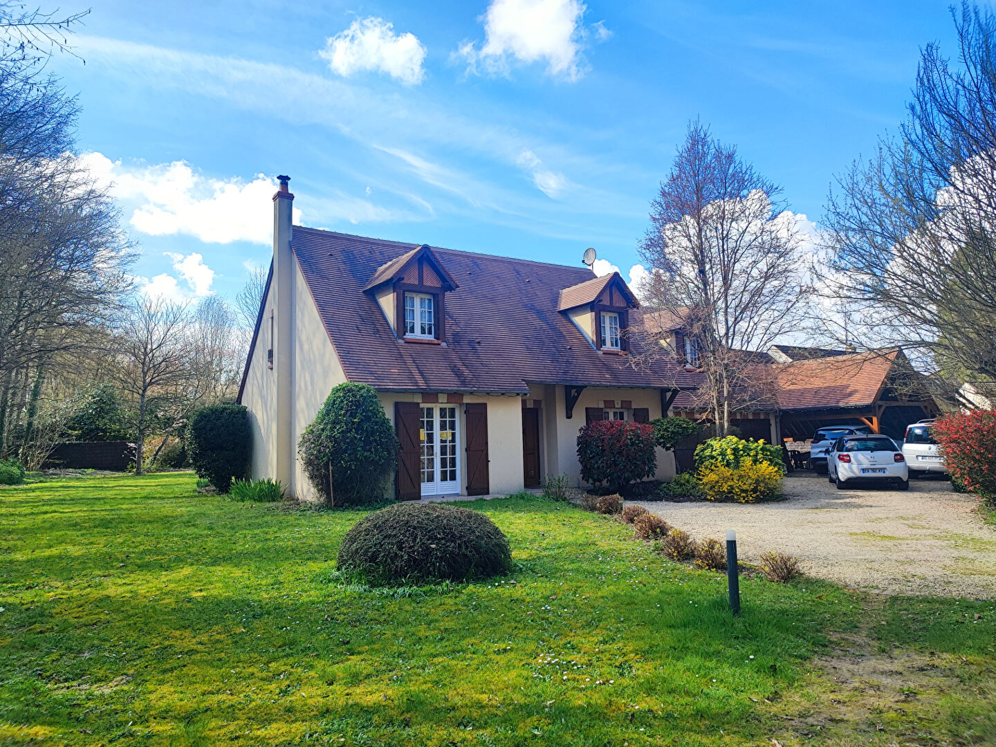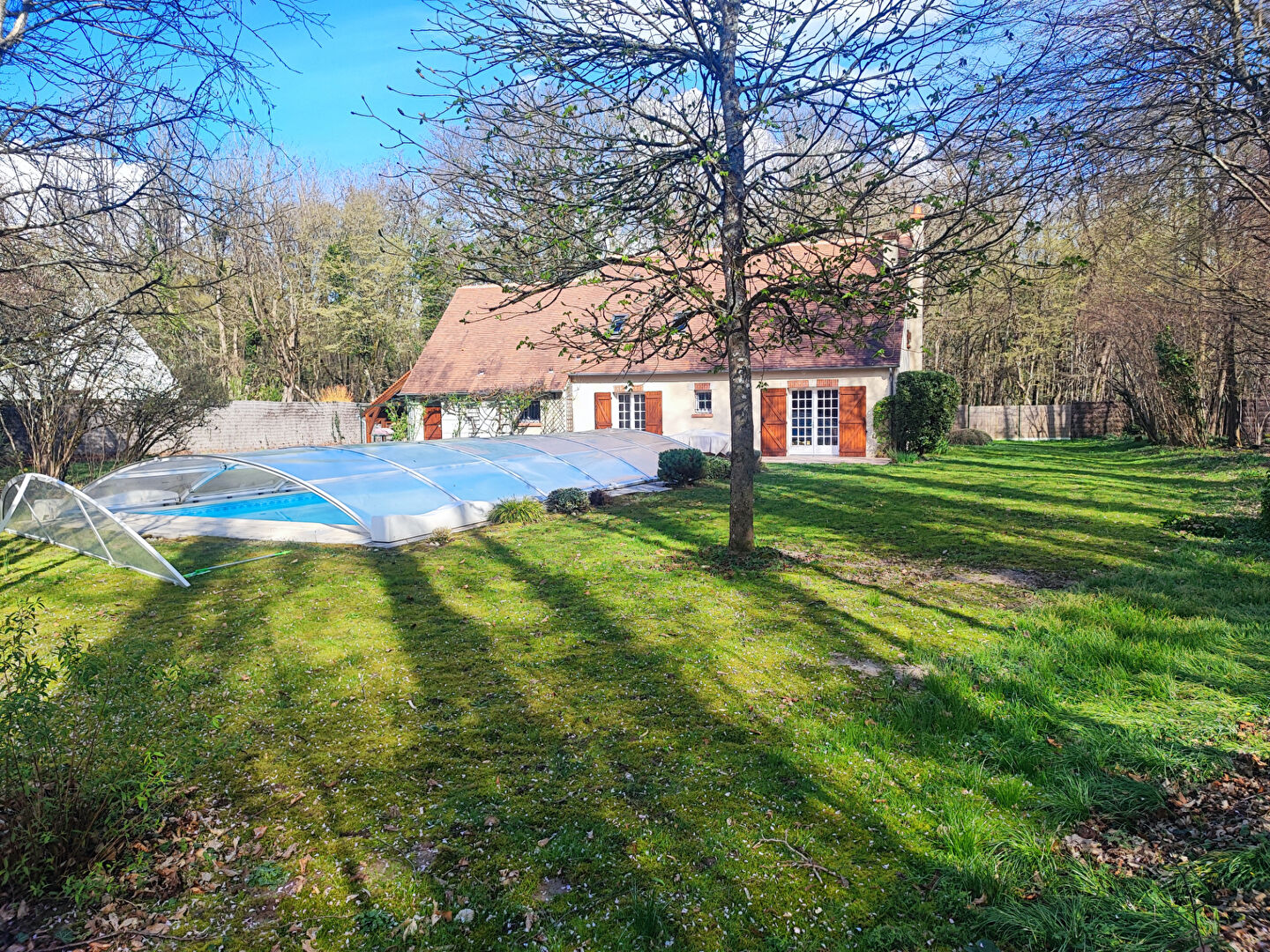 VENNECY, 15 minutes ORLEANS, maison de construction traditionnelle située en bordure de forêt, comprenant : une entrée avec placard, séjour-salon avec poêle godin, cuisine aménagée et équipée, chambre avec placard (possibilité de créer une salle d'eau) parquet chêne, wc. A l'étage : palier, 3 chambres avec placard, chambre avec dressing, salle de'eau, salle de bains. Garage double, préau, bûcher, cave à vin. Terrain arboré de 8039 m², piscine de 5m par 10.8m, abris de jardin. Pas de vis-à-vis, environnement calme