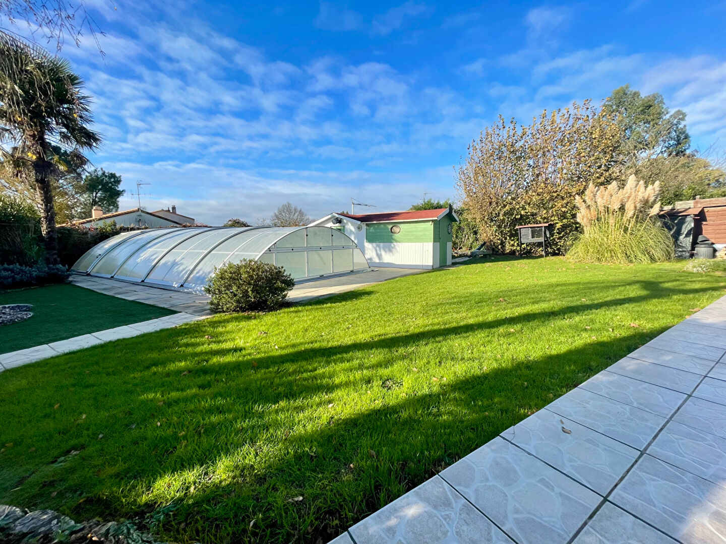 À l'extérieur, jardin avec piscine, pool house, terrasse, stationnement couvert et plusieurs places extérieurs.