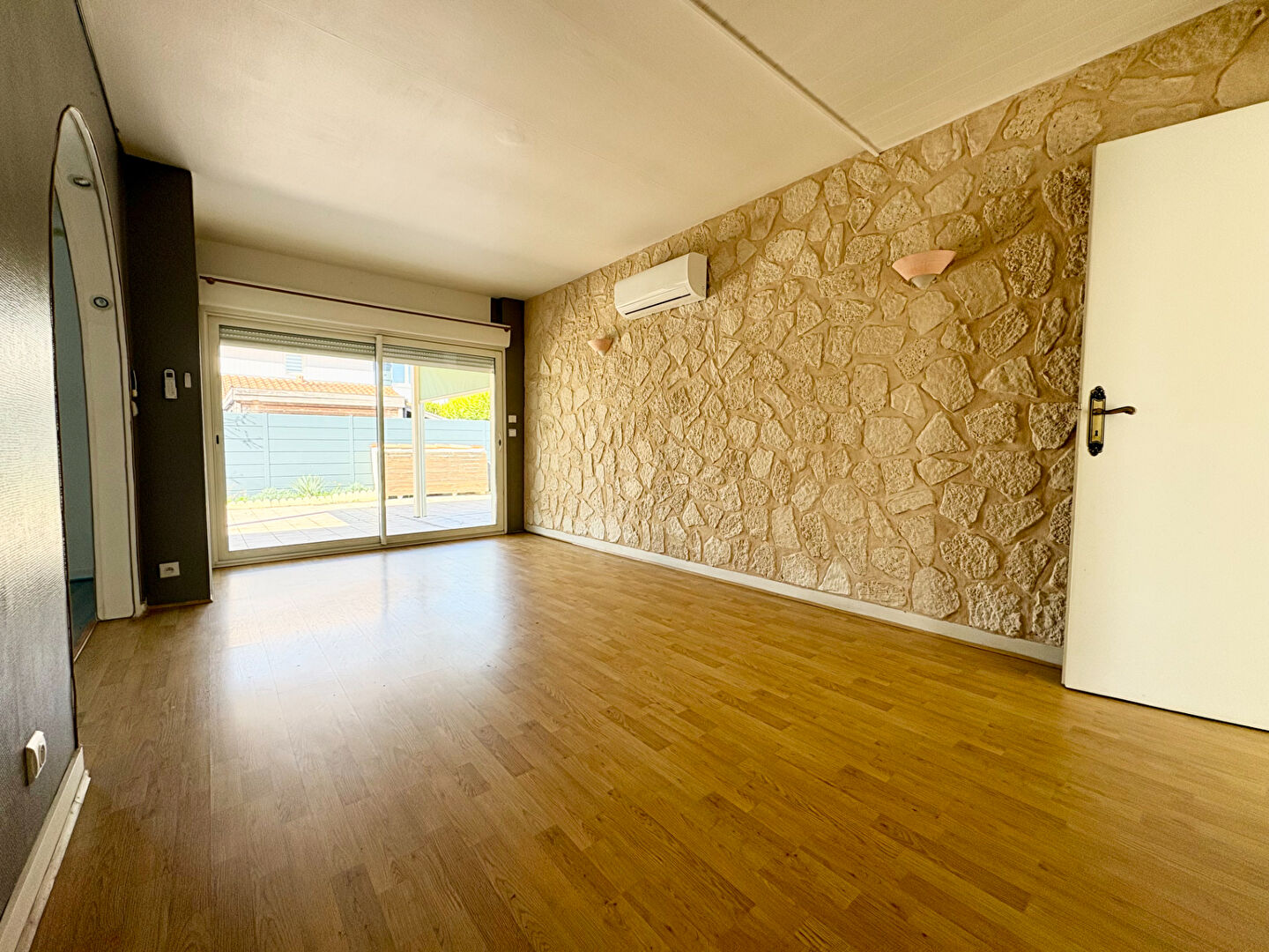 L'entrée s'ouvre sur une salle à manger lumineuse, prolongée par un salon confortable équipé d'une climatisation réversible, offrant un réel confort été comme hiver.