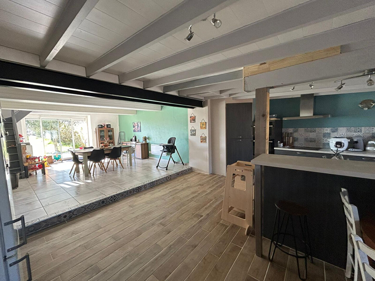 À l'extérieur, une terrasse idéale pour profiter des beaux jours, un grand jardin entièrement clos d'environ 2238 m², une cour ainsi qu'un garage complètent ce bien.