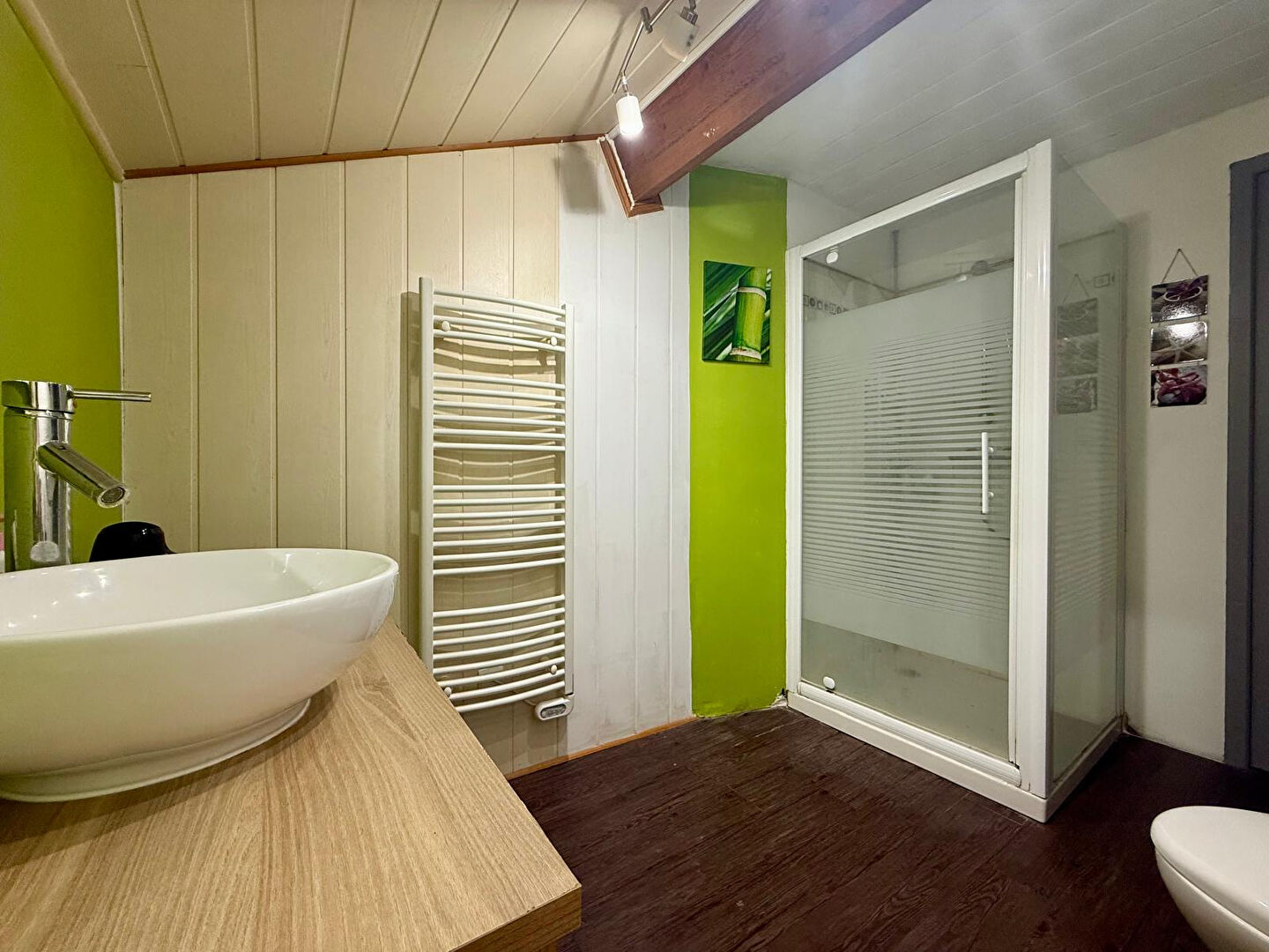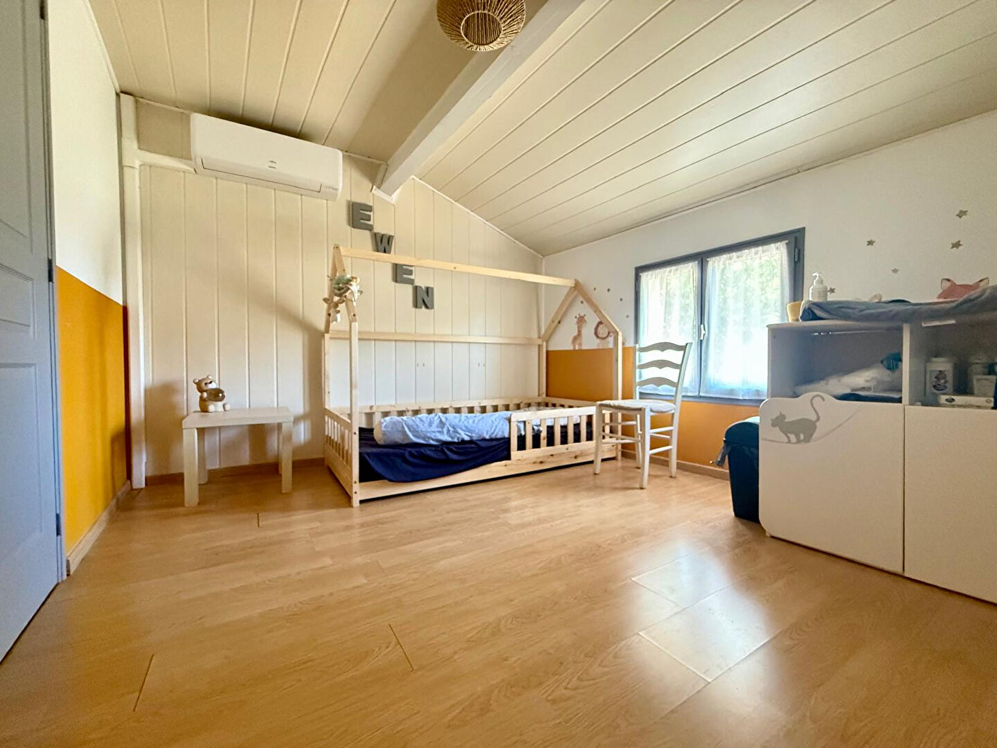 À l'étage, vous trouverez trois chambres, dont une avec un spacieux dressing, un bureau et une salle d'eau avec WC.
