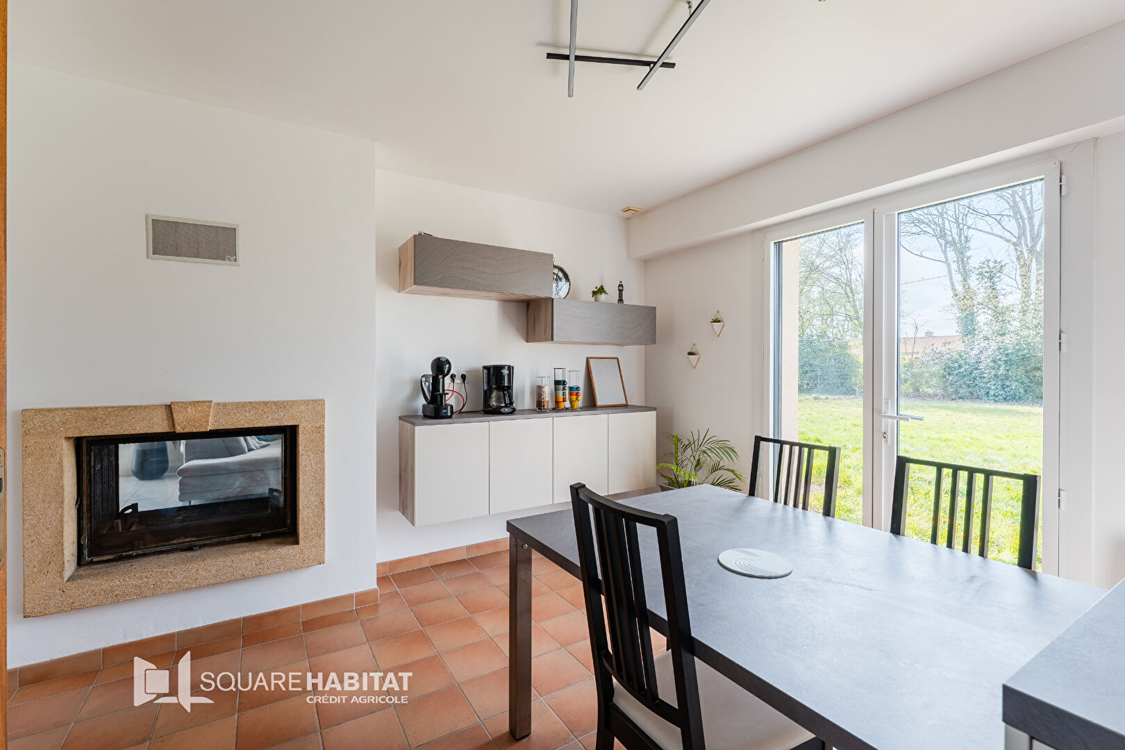 Vous serez séduit par une cuisine aménagée et entièrement équipée (hotte, plaque de cuisson, four micro-ondes, four, lave-vaisselle, meubles hauts et bas) ouverte sur un agréable espace salle à manger salon, agrémenté d'une cheminée conviviale.