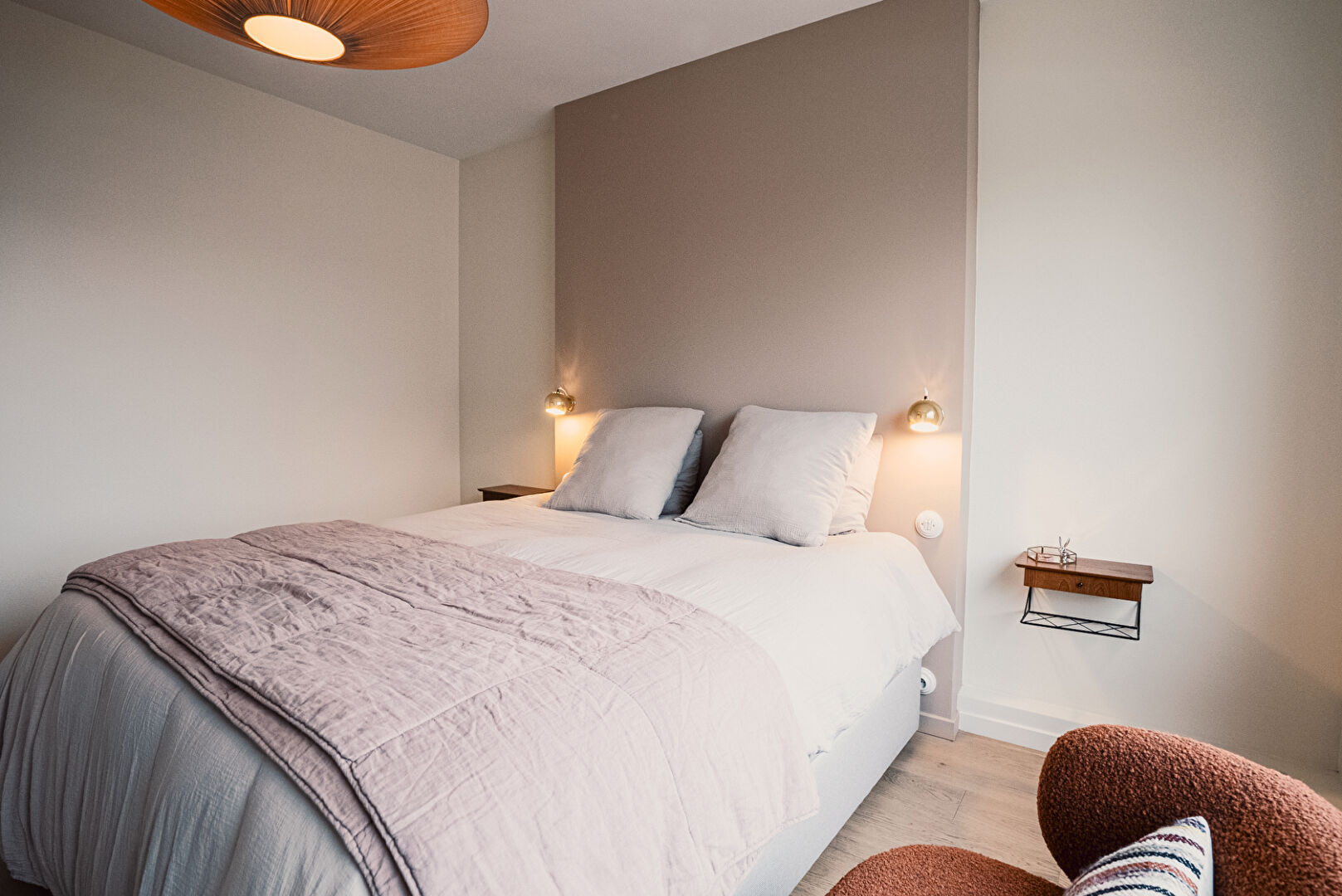 La partie nuit comprend : une première chambre confortable, une salle de bain, une deuxième chambre avec sa salle de douche privative, une troisième chambre, actuellement aménagée en bureau, parfaite pour le télétravail, une buanderie ainsi que des WC séparés.