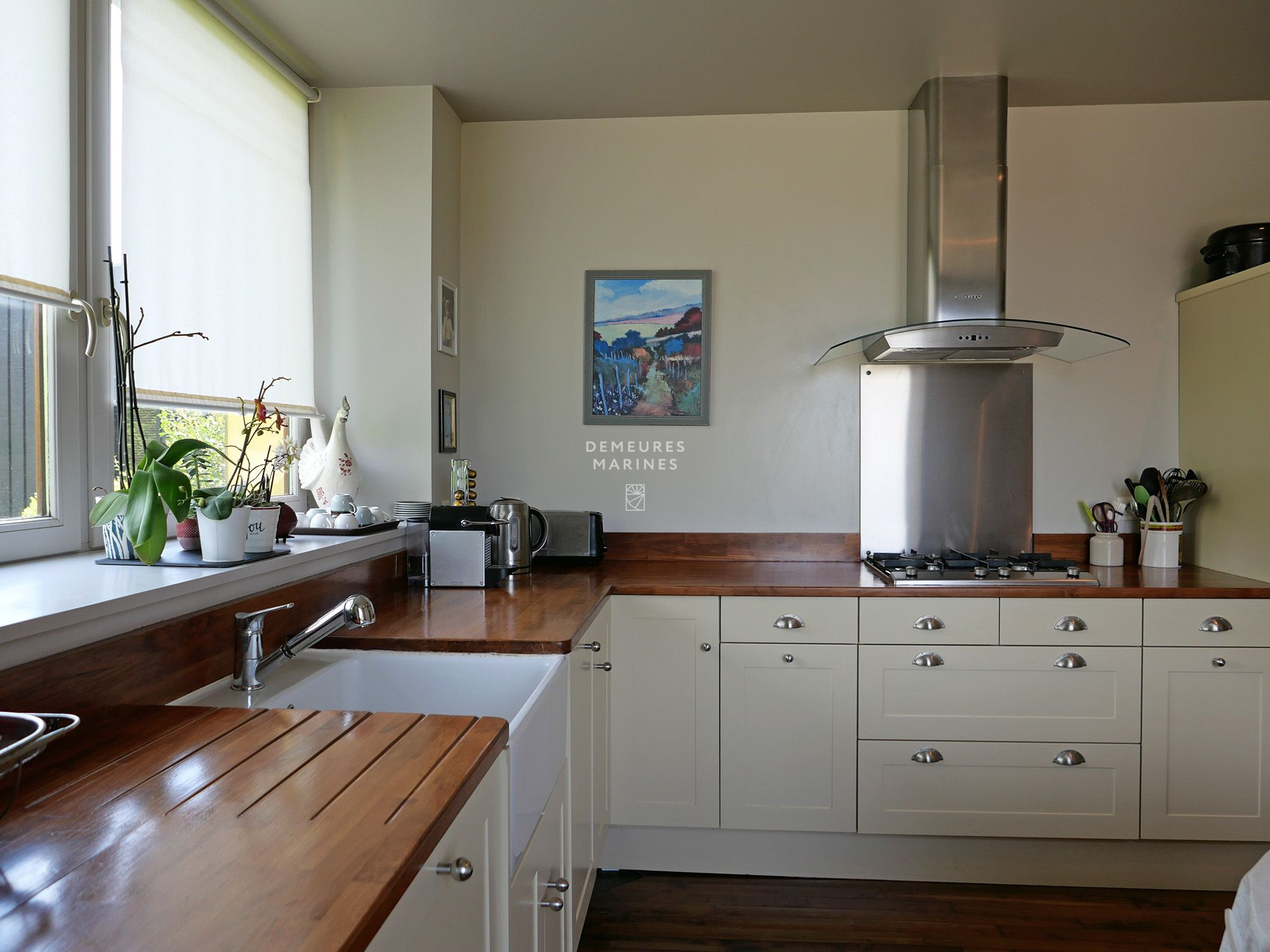 Demeures Marines vous dévoile en exclusivité « Les Hortensias », une demeure de charme située dans un petit hameau entre Vannes et Sainte-Anne-d'Auray. À seulement 10 minutes du centre de Vannes, vous découvrirez un écrin de verdure aux mille et une fleurs où règne une précieuse quiétude. Cette maison de famille en pierre a fait l'objet d'une belle rénovation avec la création d'une extension qui apporte une énergie contemporaine à l'ensemble.