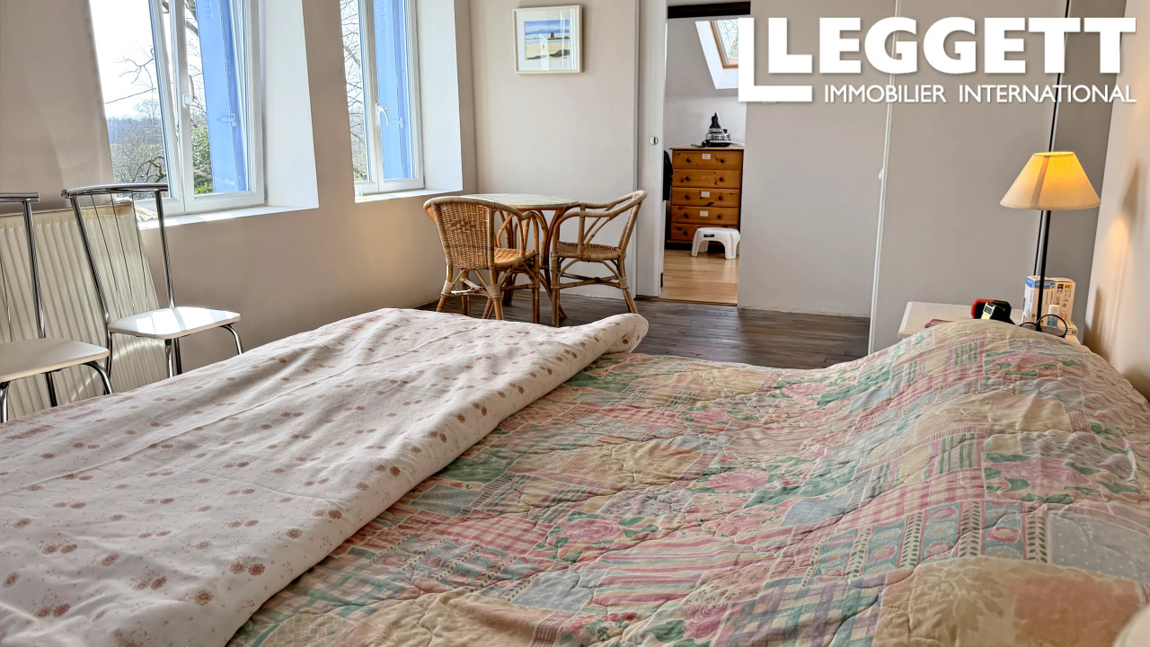 Un bâtiment indépendant avec ancien four à pain ajoute au charme de la propriété. Le terrain d'environ 4,83 hectares se compose de prairies ouvertes avec un étang, un puits et une source d'eau. Assainissement par fosse septique de 5 000L conforme aux normes actuelles.