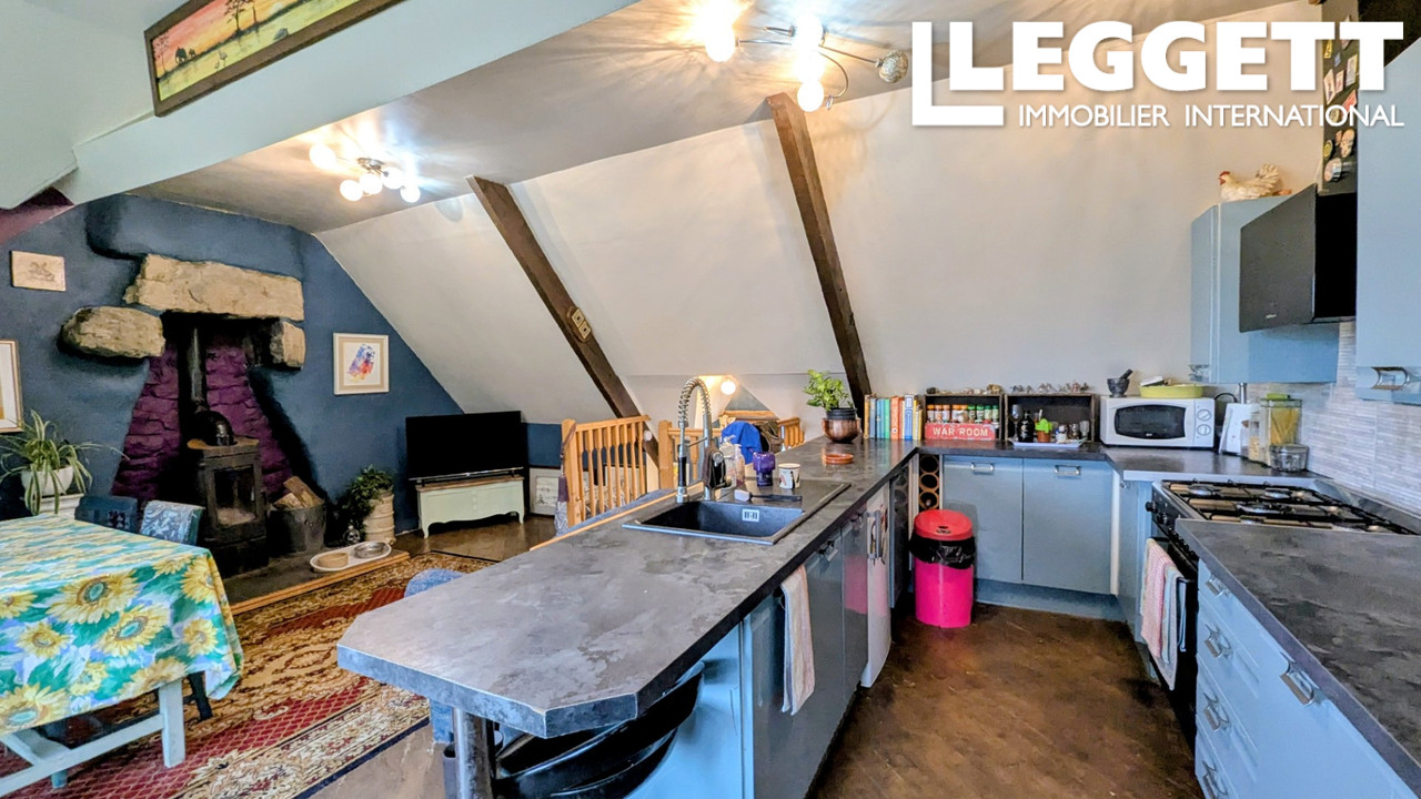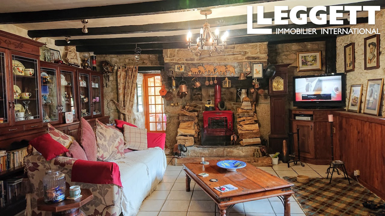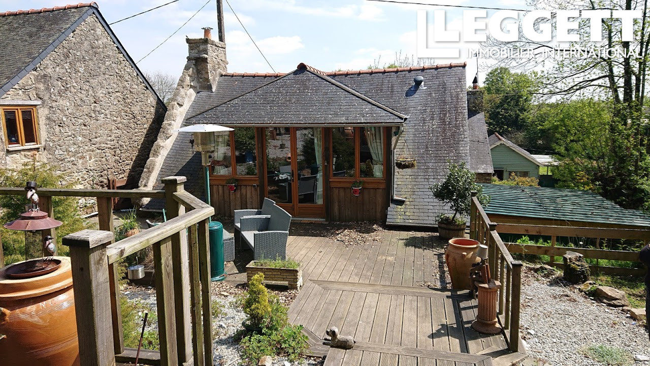 A42759JW56 - Cette propriété magnifiquement rénovée, pleine de caractère dans les deux maisons, dispose d'une grande terrasse en bois, d'un jardin et d'un carport. Elle est située dans un charmant hameau breton, à seulement 5 minutes du village.