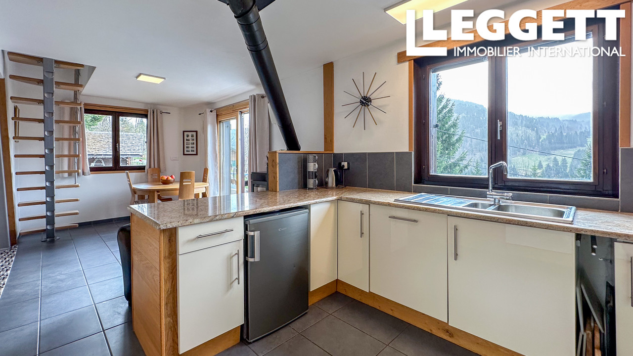 A43405JST74 - Ce charmant chalet, sur 3 niveaux, est situé dans un quartier tranquille avec un accès pratique au centre des Gets et à l'arrêt de ski-bus. La propriété comprend également un beau mazot.