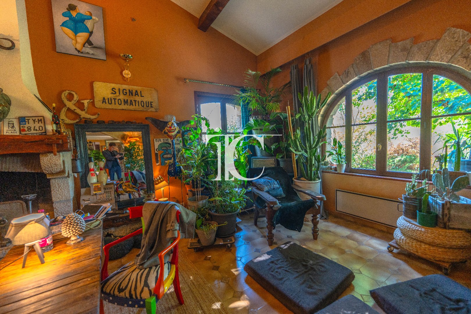 Édifiée sur un terrain arboré de 4 490 m², elle dispose également d'une piscine de 8 x 4 m et d'un garage de 46 m².