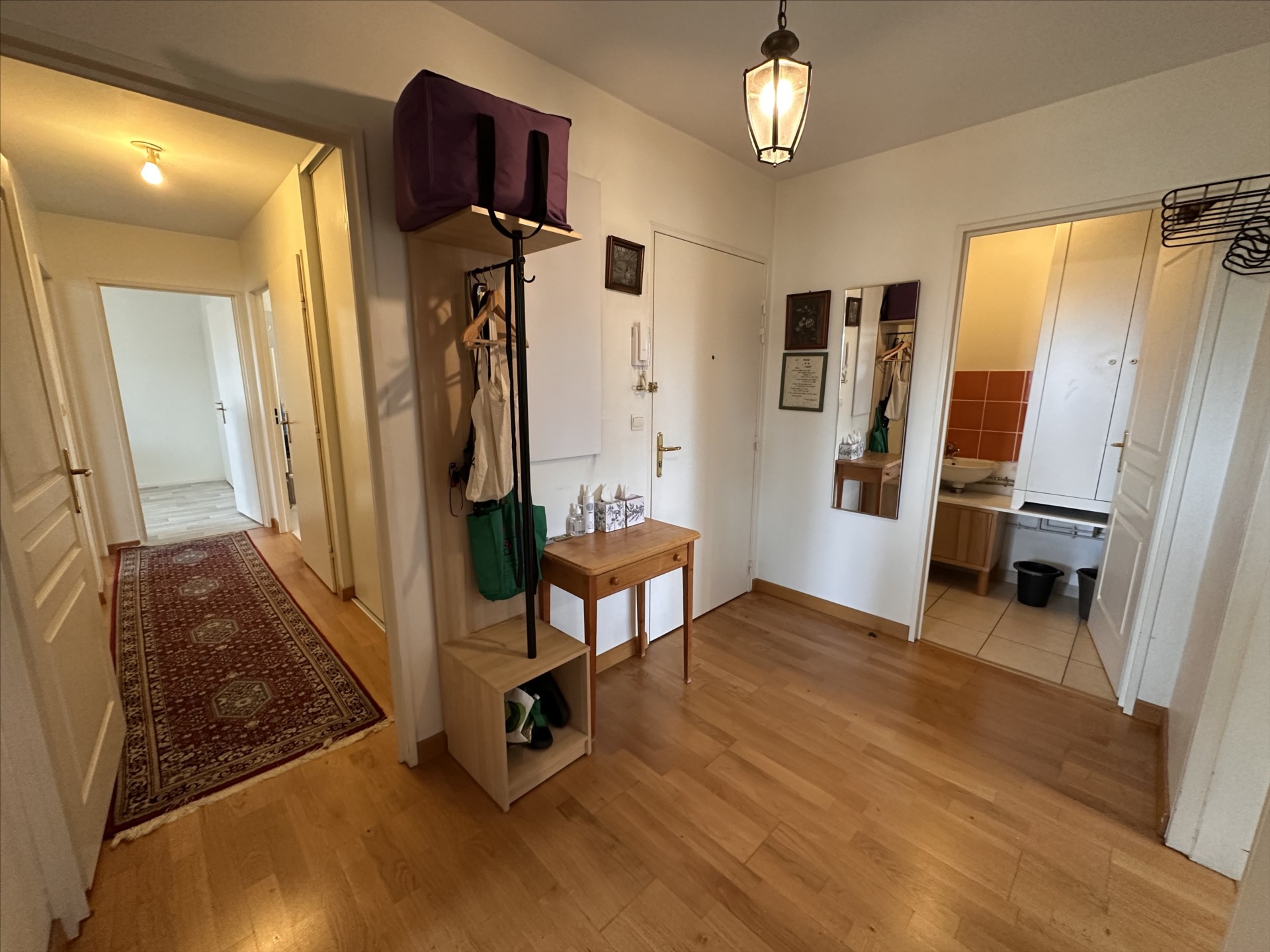L'appartement propose une entrée, un salon-séjour lumineux, une cuisine, deux chambres, ainsi qu'une suite parentale avec sa salle d'eau. Vous y trouverez également une salle de bains et deux WC séparés, offrant un agencement pratique et confortable.